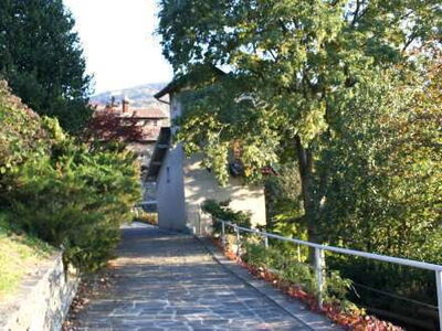 This property, located at the end of small road out of the hilltown of Protolungo, is isolated and private save for the main house behind it. High above Pettenasco, it is built into the hillside and under the drive to the main house. Probably a former well-house, it consists of one room on top of the other with the main bedroom at the top (there is a small bath up there). The main floor of kitchen, bath, and living room is comfortable and cool, looking out into the lush green forest. Views of the lake are from the walkway approach, or the upper floors.