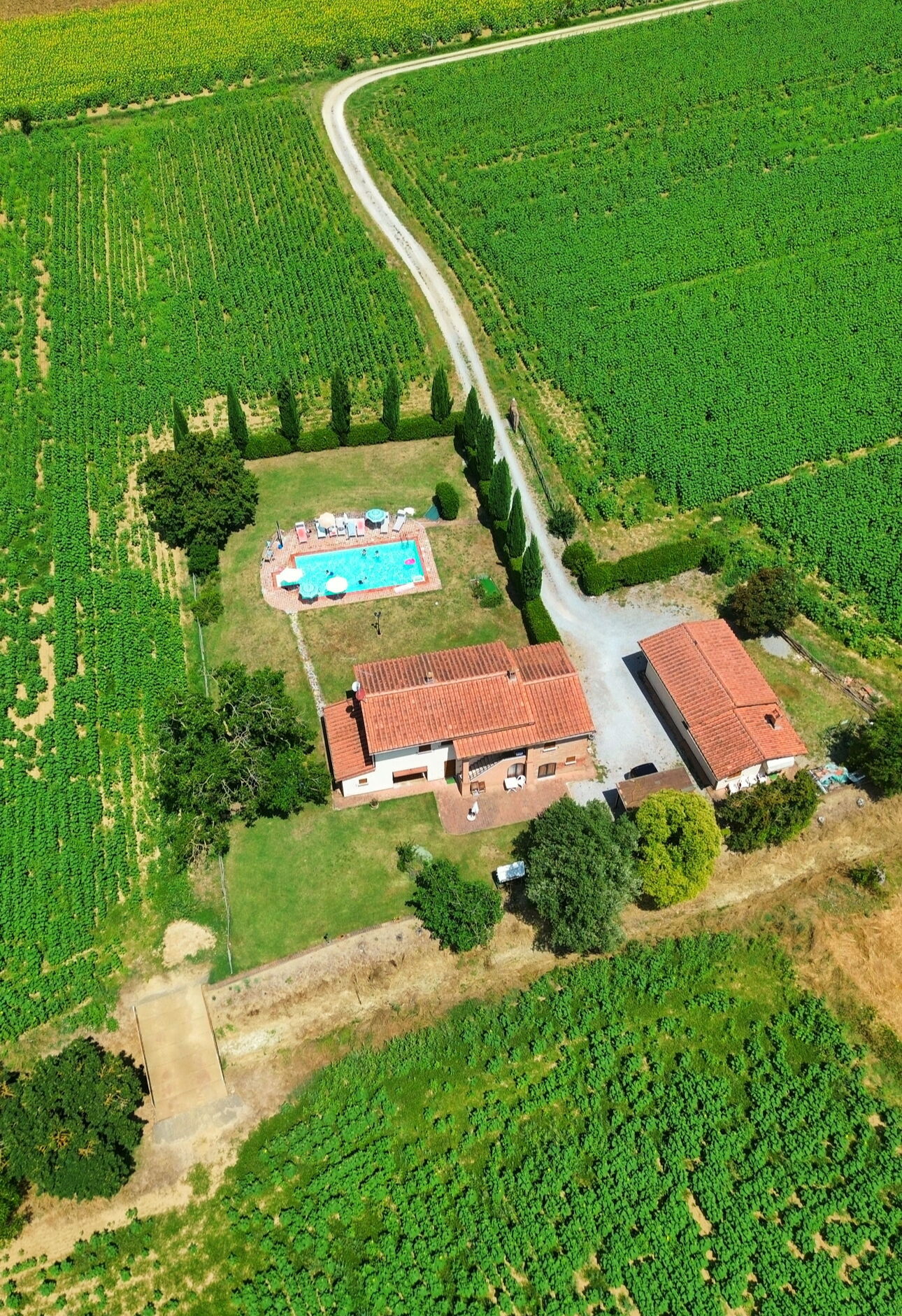 Wat een geweldig huis en wat een prachtige huiseigenaar! De 78-jarige Pietro kwam iedere dag het zwembad inspecteren en maakt graag een praatje met de gasten. Het huis ligt helemaal vrij tussen de velden met zonnebloemen. We hebben genoten!