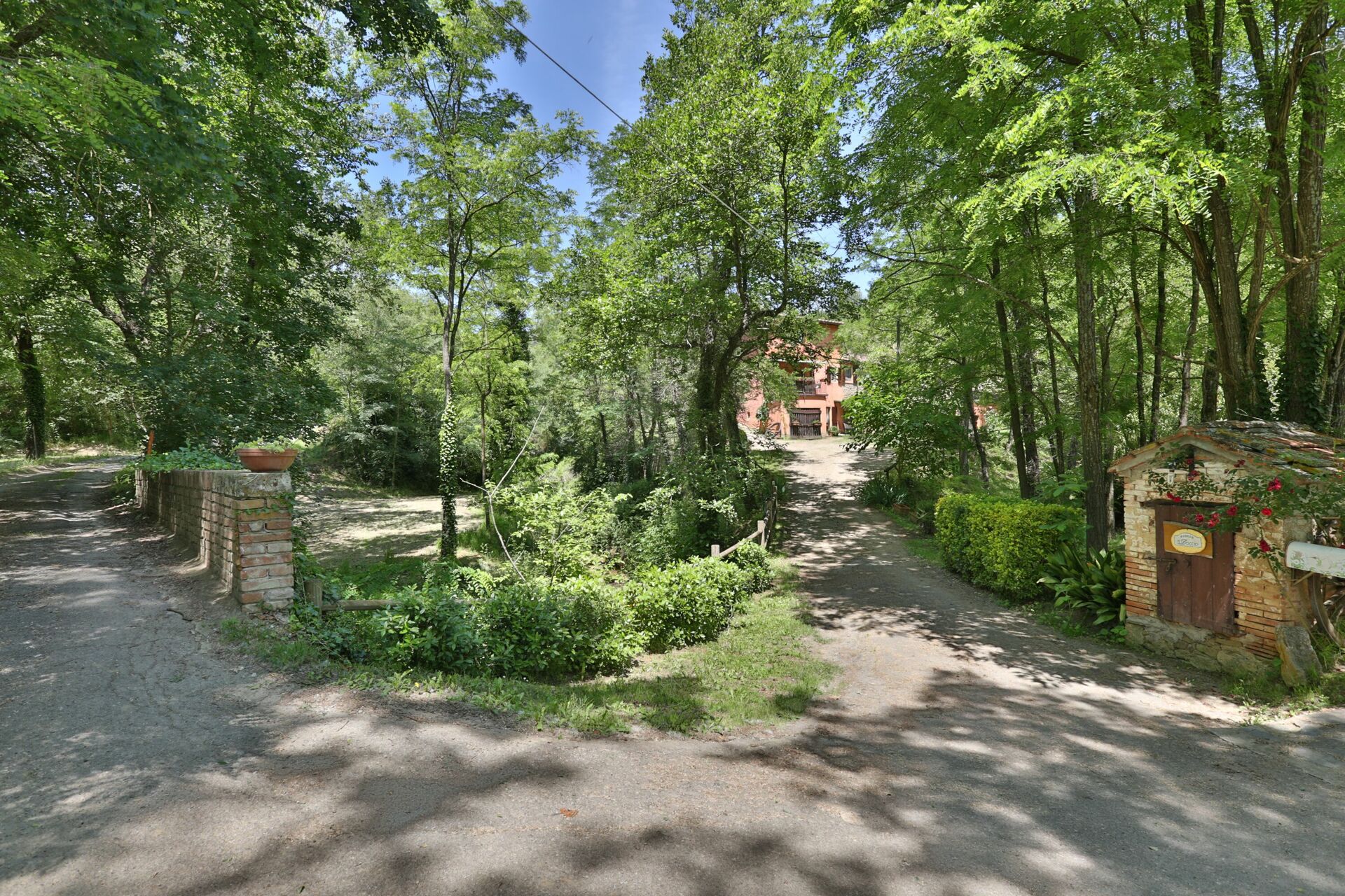 La propriété entière comprend le Podere et s'étend sur environ 8 hectares de champs et de bois de chênes. La route d'accès à la propriété se poursuit au-delà du petit pont jusqu'à la fin de son parcours vers les maisons de l'ancien Mulino del Doccio.