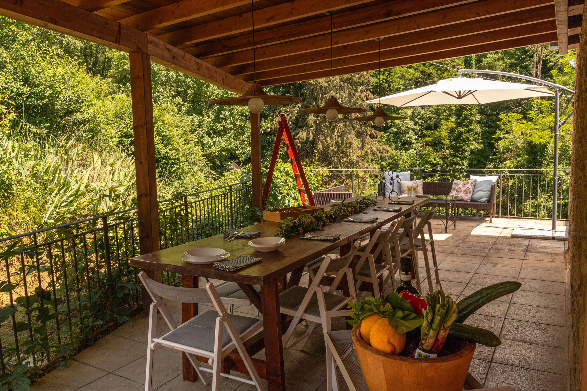 Deux terrasses, une pour profiter d'une bonne tasse de thé ou d'un verre de vin et une grande terrasse pour manger en plein air tous ensemble !