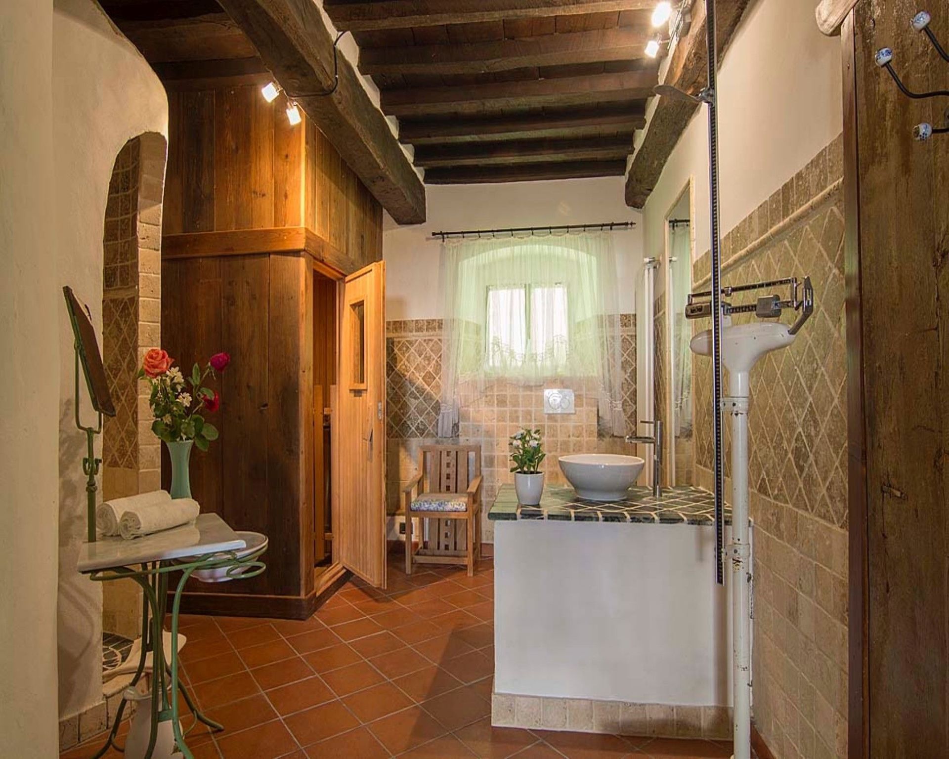Dans la salle de bain au rez-de-chaussée il y a un sauna pour se détendre.