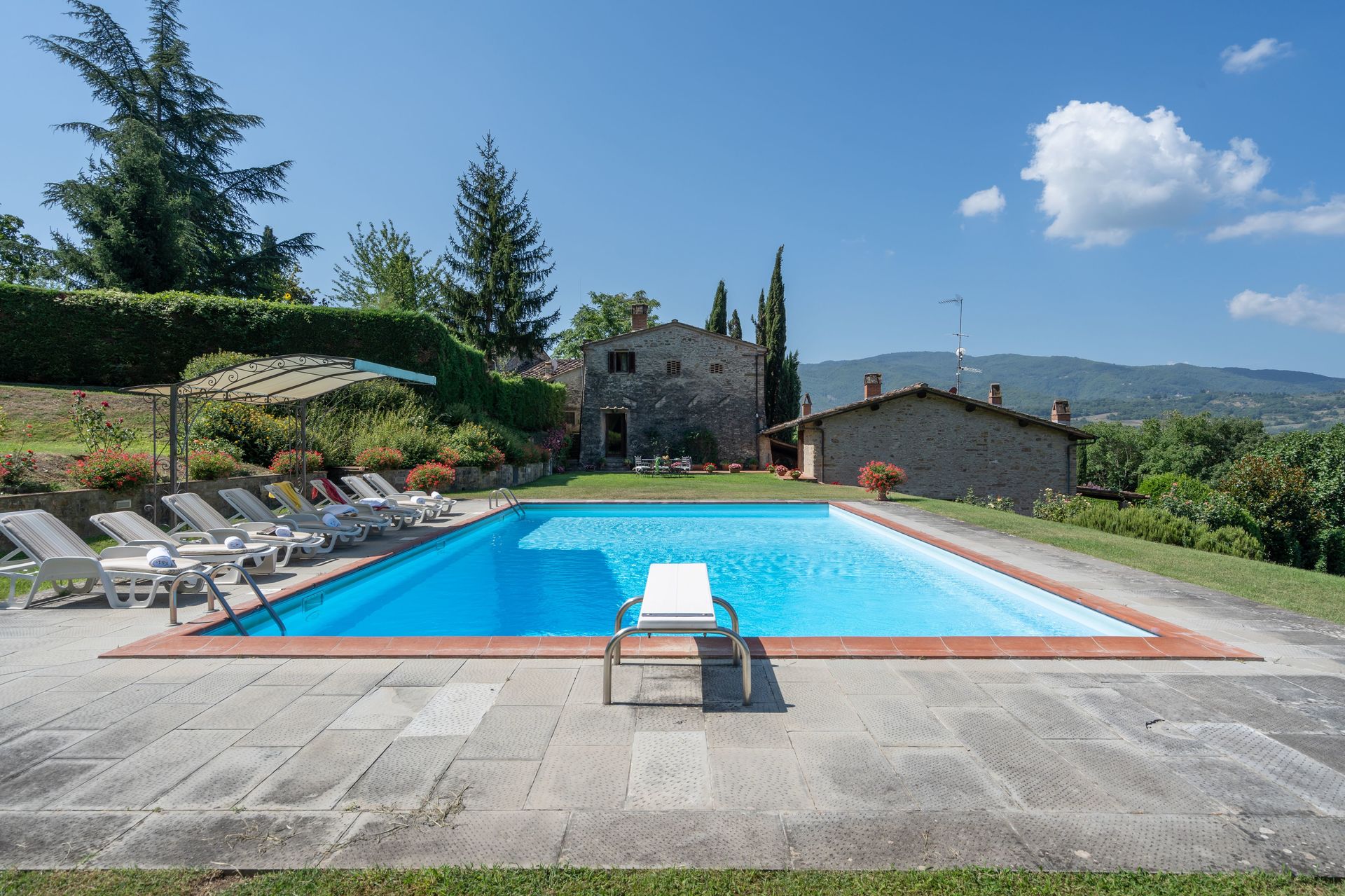 Villa La Terrazza est une jolie structure en pierre (300 mètres carrés) avec internet sans fils, piscine privée et climatisation. La propriété peut accueillir comfortablement jusqu'à dix personnes dans quatre chambres à coucher avec quatre salles de bain. La propriété est idéalement située 6 km de Vicchio, Italie, dans la région touristique "Florence Et Ses Environs" et à seulement 43 km de Florence.