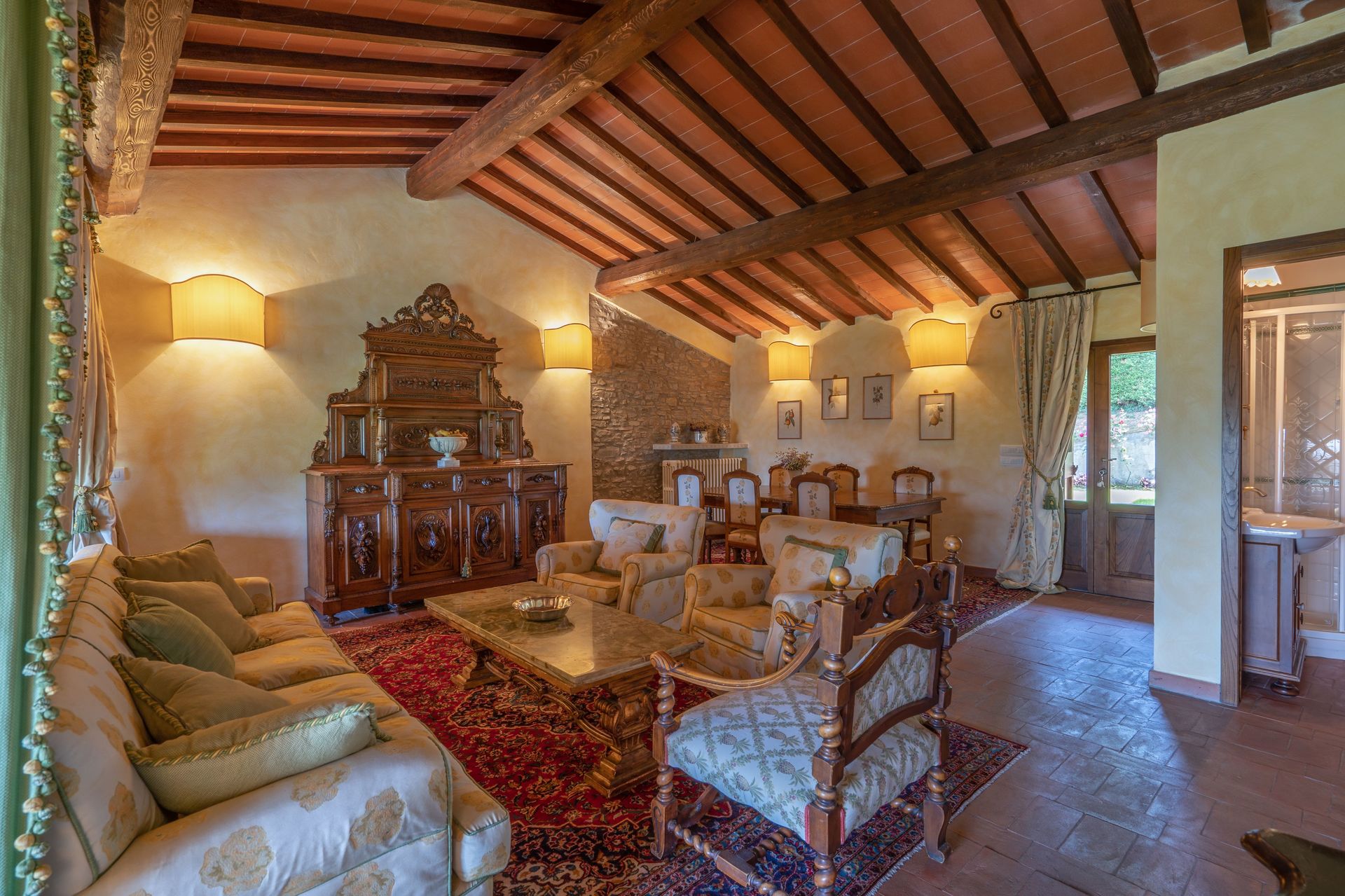 La plupart des gens aiment visiter les villes et les villages dans les alentours pendant les vacances, donc pour votre référence vous trouvez ici est une liste des lieux populaires avec les distances (à vol d’oiseau) en voiture depuis la propriété:Florence 43 km, Greve In Chianti 58 km, Arezzo 87 km, San Gimignano 92 km et Bologne 101 km.