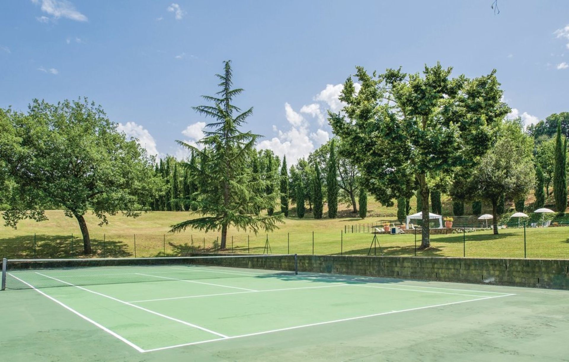 jardin (5000 m2): piscine (privé, largeur: 6m, longueur: 12m, profondeur max.: 2m, profondeur min.: 1.25m, en plein air), internet WIFI, barbecue, espace extérieur pour les repas en plein air, deux tables à manger, deux pavillons, clôturé /clôturée, court de tennis.