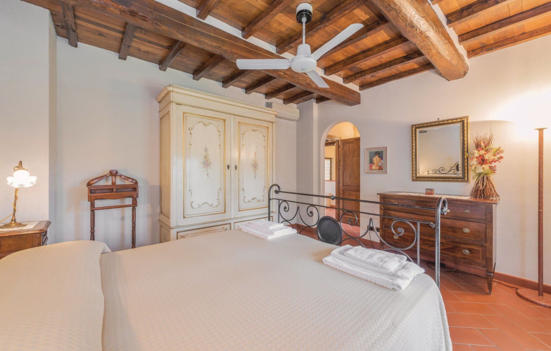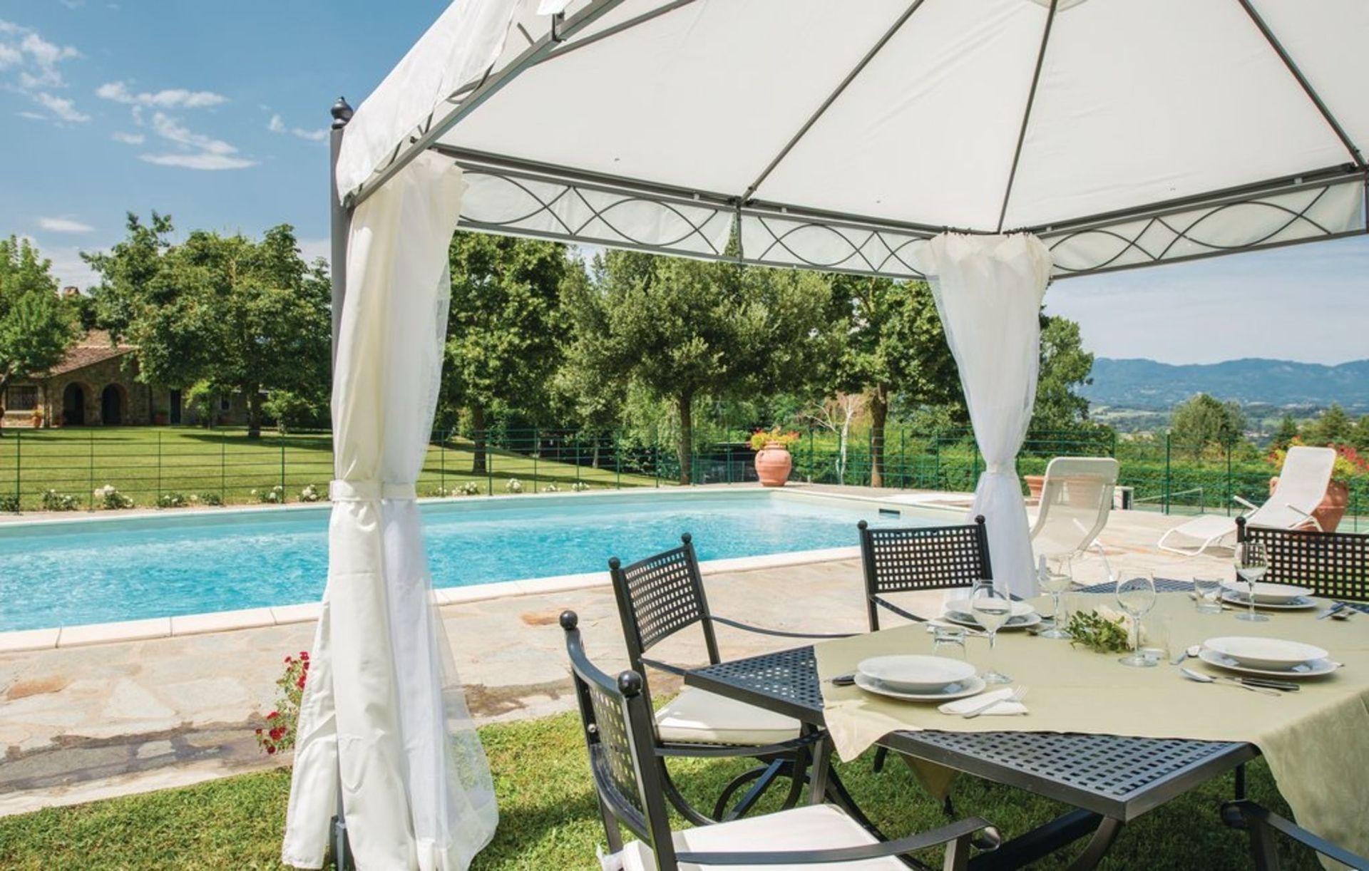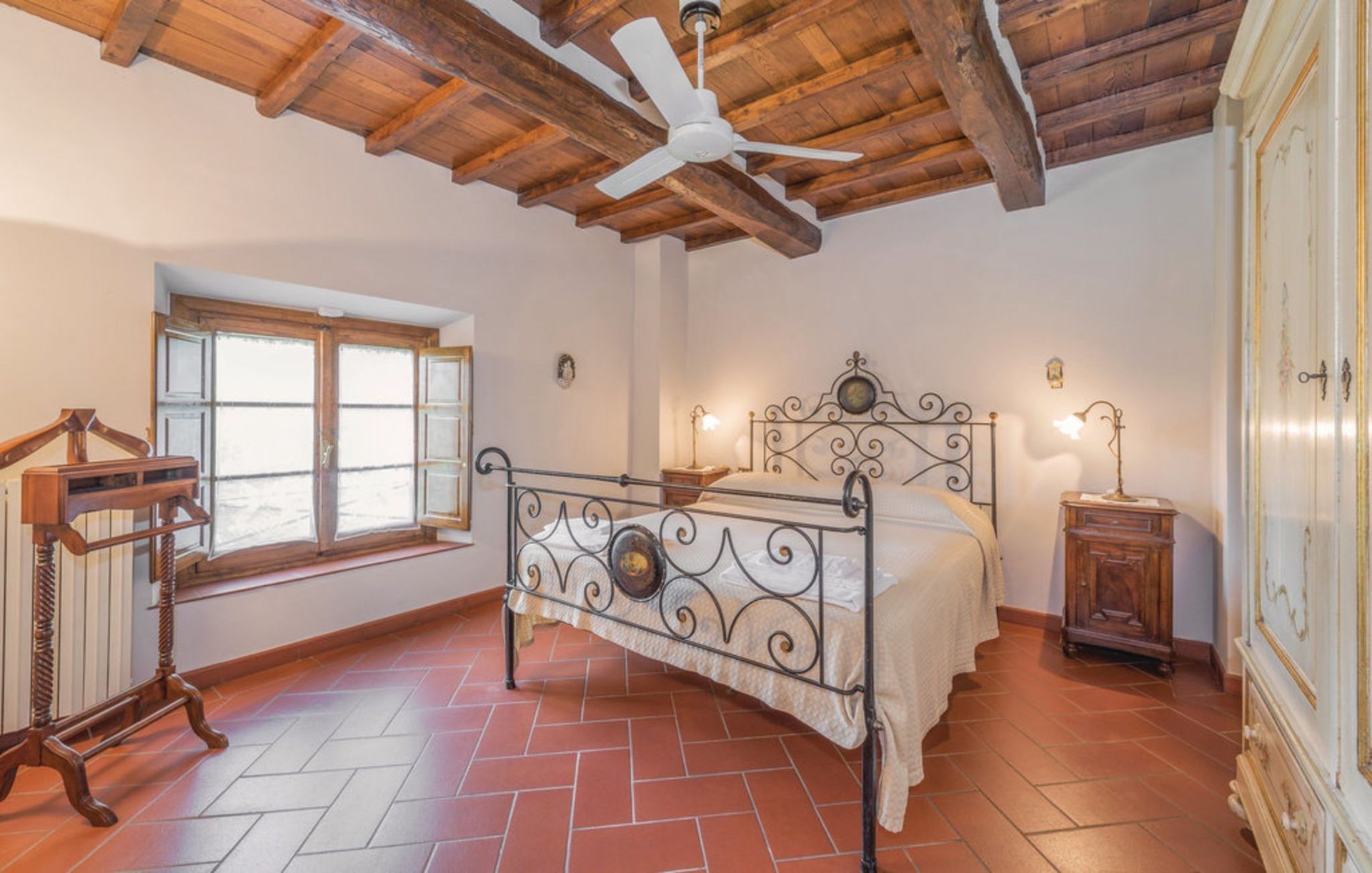 Ancienne grange finement restaurée, située en position panoramique sur les pentes des collines mugellanes, entre le village de San Lorenzo et celui de vicchio, à quelques kilomètres de Florence. La structure dispose d’un mobilier très soigné et confortable, avec des antiquités. Air conditionné au premier étage. Entoure la maison un grand jardin de plus de 5000 m². entièrement clôturé et équipé avec piscine clôturée et chauffée à l’usage exclusif des hôtes (12m. x 6m. prof. 125/200cm.). La propriété dispose également d’espaces extérieurs (deux kiosques) pour les déjeuners et dîners en plein air (barbecue et four à bois). Court de tennis privé à usage complet (raquettes à disposition). Internet Wi-Fi gratuit. Parking privé dans la propriété. La maison est située à 3km de "Vicchio" (village natal de Giotto et de Beato Angelico), à 35km de Florence, à 23km du Barberino Designer Outlet (plus de 100 boutiques de grandes marques de la mode italienne et internationale) et du lac de balance (canoë, voile, planche à voile), à 12km de Poggio dei Medici Golf Club, à 7km du centre équestre.