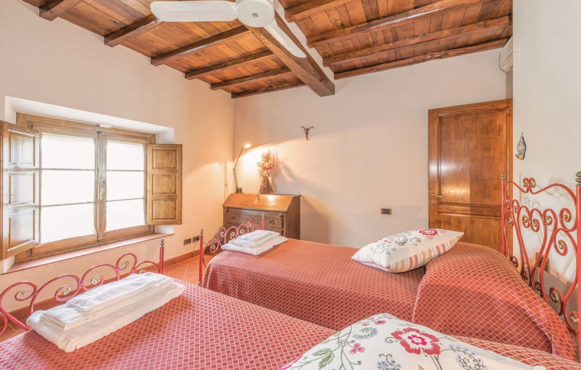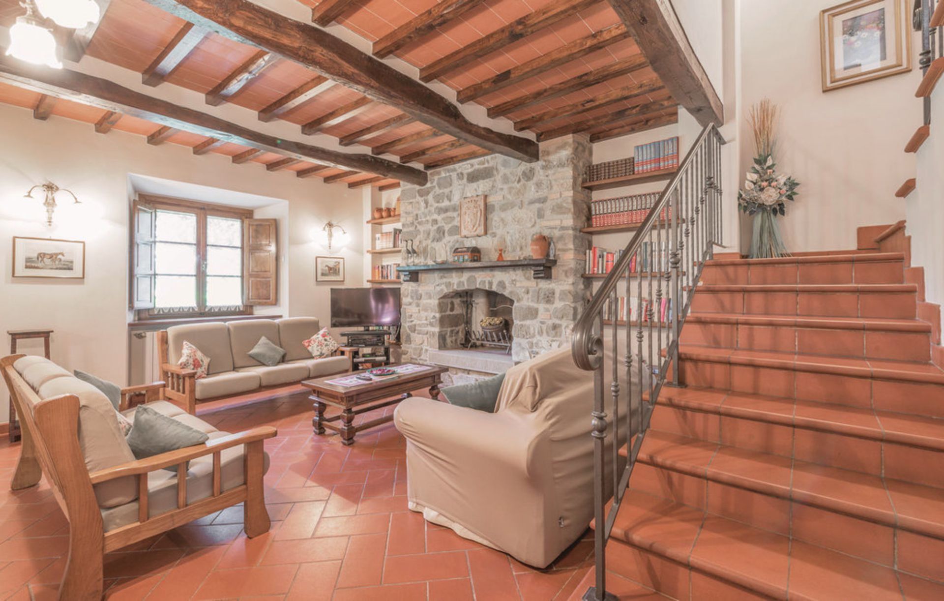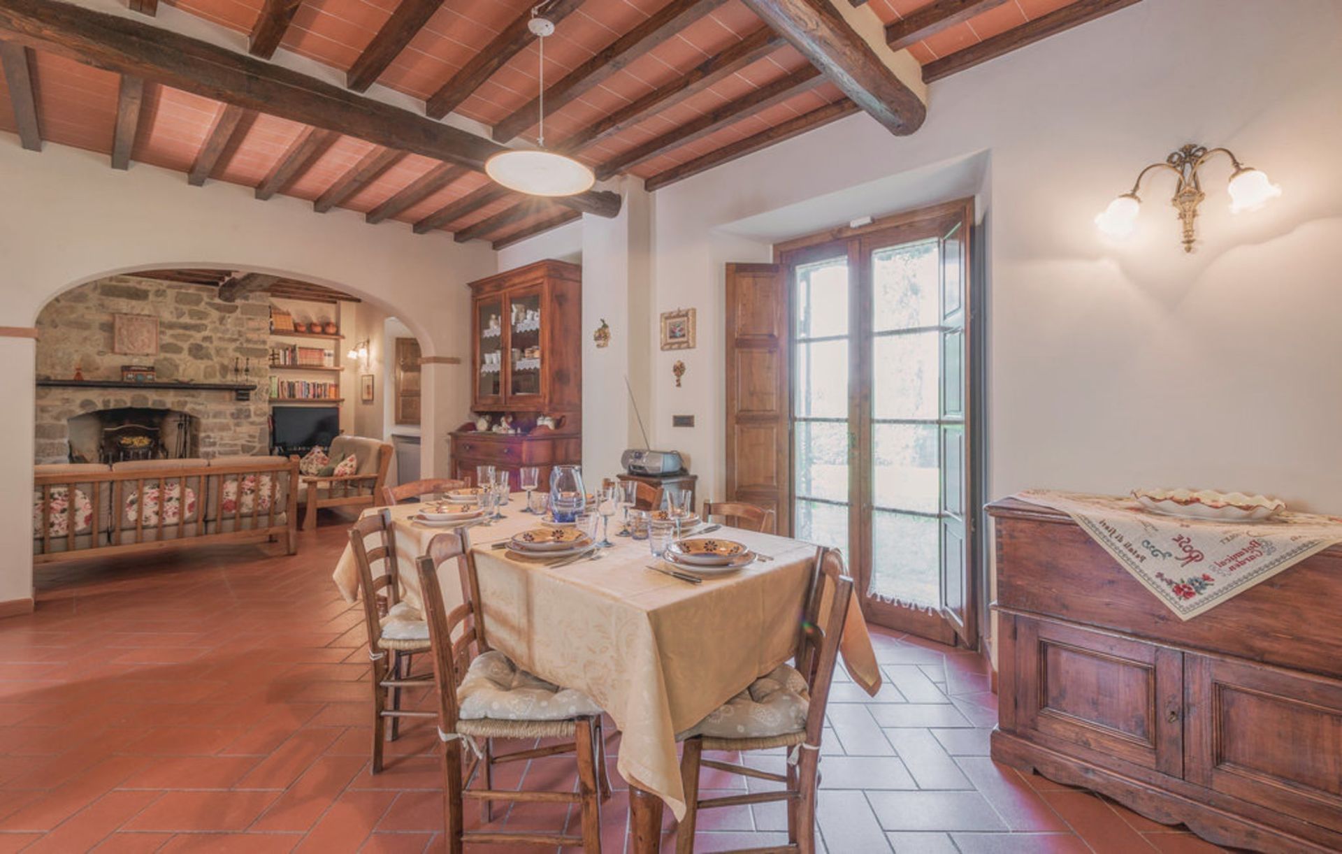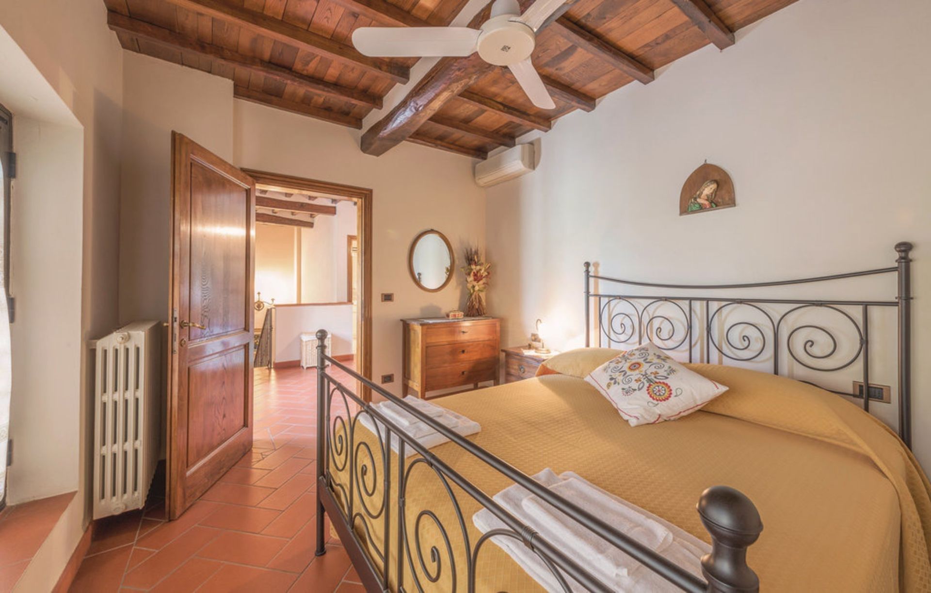 Ancienne grange finement restaurée, située en position panoramique sur les pentes des collines mugellanes, entre le village de San Lorenzo et celui de vicchio, à quelques kilomètres de Florence. La structure dispose d’un mobilier très soigné et confortable, avec des antiquités. Air conditionné au premier étage. Entoure la maison un grand jardin de plus de 5000 m². entièrement clôturé et équipé avec piscine clôturée et chauffée à l’usage exclusif des hôtes (12m. x 6m. prof. 125/200cm.). La propriété dispose également d’espaces extérieurs (deux kiosques) pour les déjeuners et dîners en plein air (barbecue et four à bois). Court de tennis privé à usage complet (raquettes à disposition). Internet Wi-Fi gratuit. Parking privé dans la propriété. La maison est située à 3km de "Vicchio" (village natal de Giotto et de Beato Angelico), à 35km de Florence, à 23km du Barberino Designer Outlet (plus de 100 boutiques de grandes marques de la mode italienne et internationale) et du lac de balance (canoë, voile, planche à voile), à 12km de Poggio dei Medici Golf Club, à 7km du centre équestre.