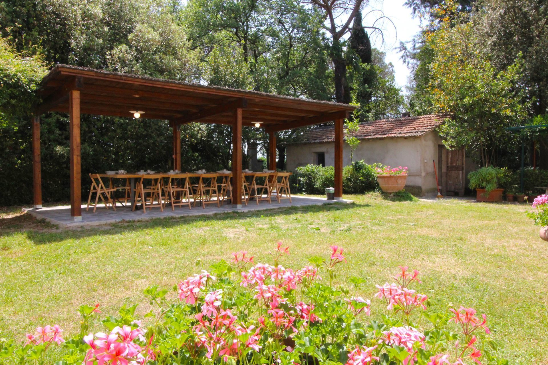 Grand parc ombragé, piscine, barbecue et four à bois disponibles. Dans le grand jardin clôturé et ombragé autour de la villa, vous trouverez une piscine de mt. 12x6 (prof. Mt. 1,50) avec toilette, un grand kiosque avec table et chaises placées à côté d'une petite maisonnette avec cuisine équipée, four à bois et barbecue et un parking privé. A environ 300 mt. de la villa (et 180 mt de la piscine) passe une ligne de chemin de fer. La villa est bien équipée et meublée dans un cadre raffiné et décoré avec des pièces d' antiquités précieuses.