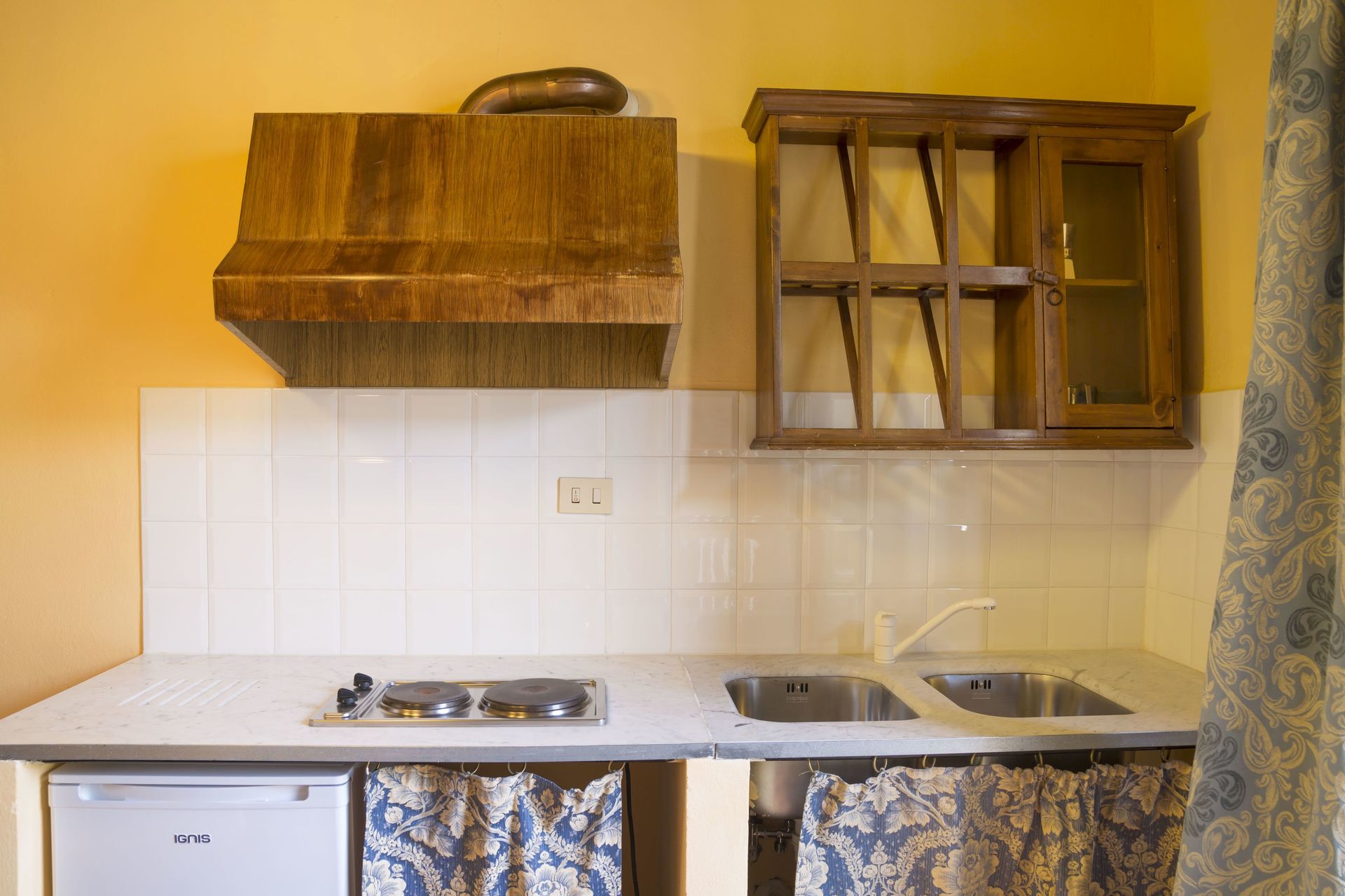 Cuisine – salle de séjour: cuisine bien équipée, table à manger (personnes: 4), réfrigérateur, congélateur, four, canapé-lit double, internet WIFI, tv satellitaire, sortie sur la terrasse.