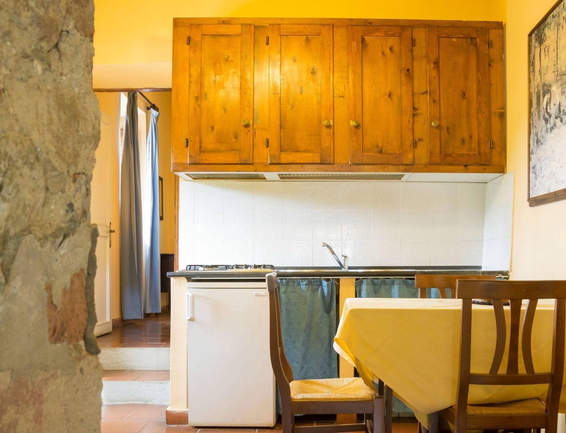 Manger avec les amis et la famille est une importante partie de la culture toscane. Profitez de la cuisine bien équipée pour préparer les repas avec des produits locaux pendant vos vacances. La cuisine comprend cuisinière et réfrigérateur, ainsi que, abondance de vaisselle et couverts pour un maximum de deux personnes.