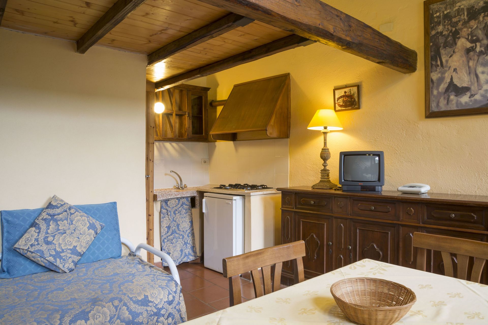 Cuisine – salle de séjour: cuisine bien équipée, table à manger (personnes: 4), réfrigérateur, congélateur, four, canapé-lit, internet WIFI, tv satellitaire, sortie sur la terrasse.