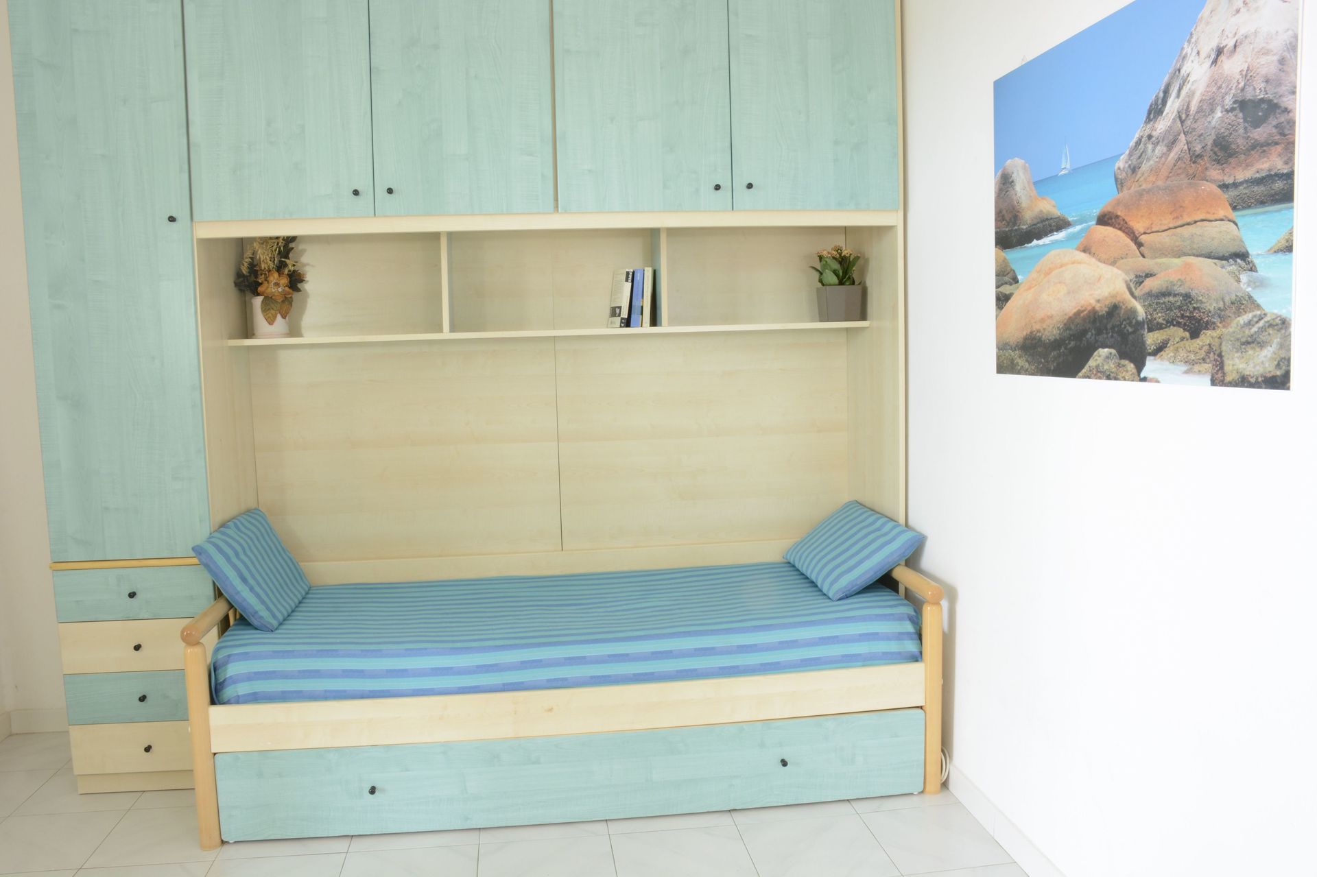 Comfortable Two rooms on the second floor, large veranda overlooking the sea. Living room with kitchenette, double sofa bed, double bedroom and bathroom with shower.