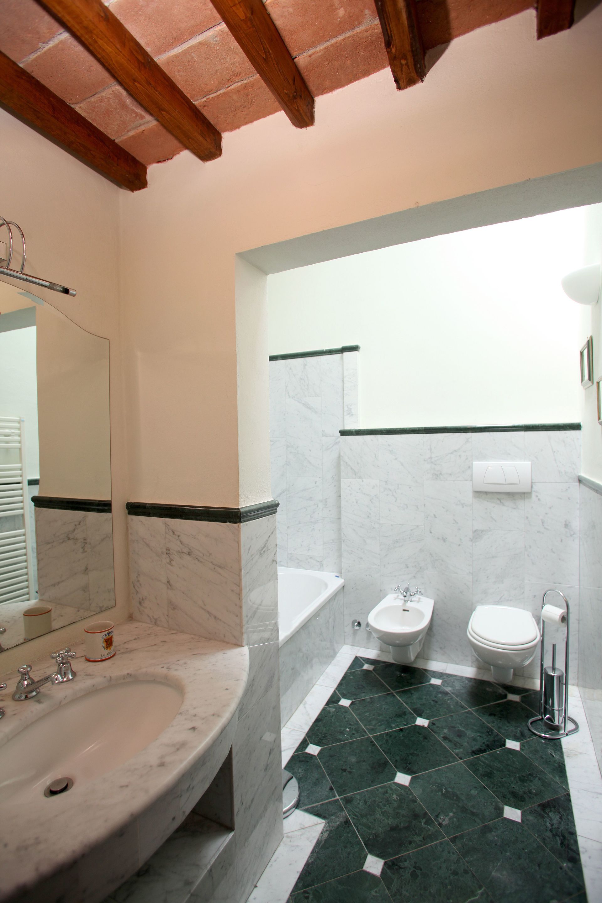 Légèrement plus petit que La Torre et La Terrazza, Il Fattore a l'avantage d'un accès au rez-de-chaussée, où vous trouverez le salon avec cheminée, la cuisine et la salle de bains avec douche dans la baignoire.