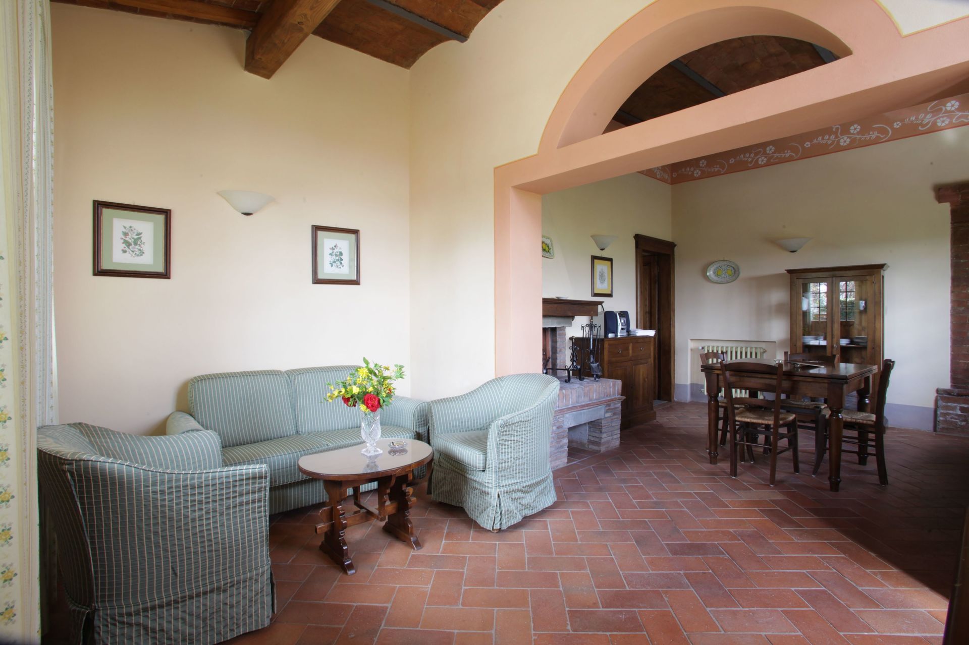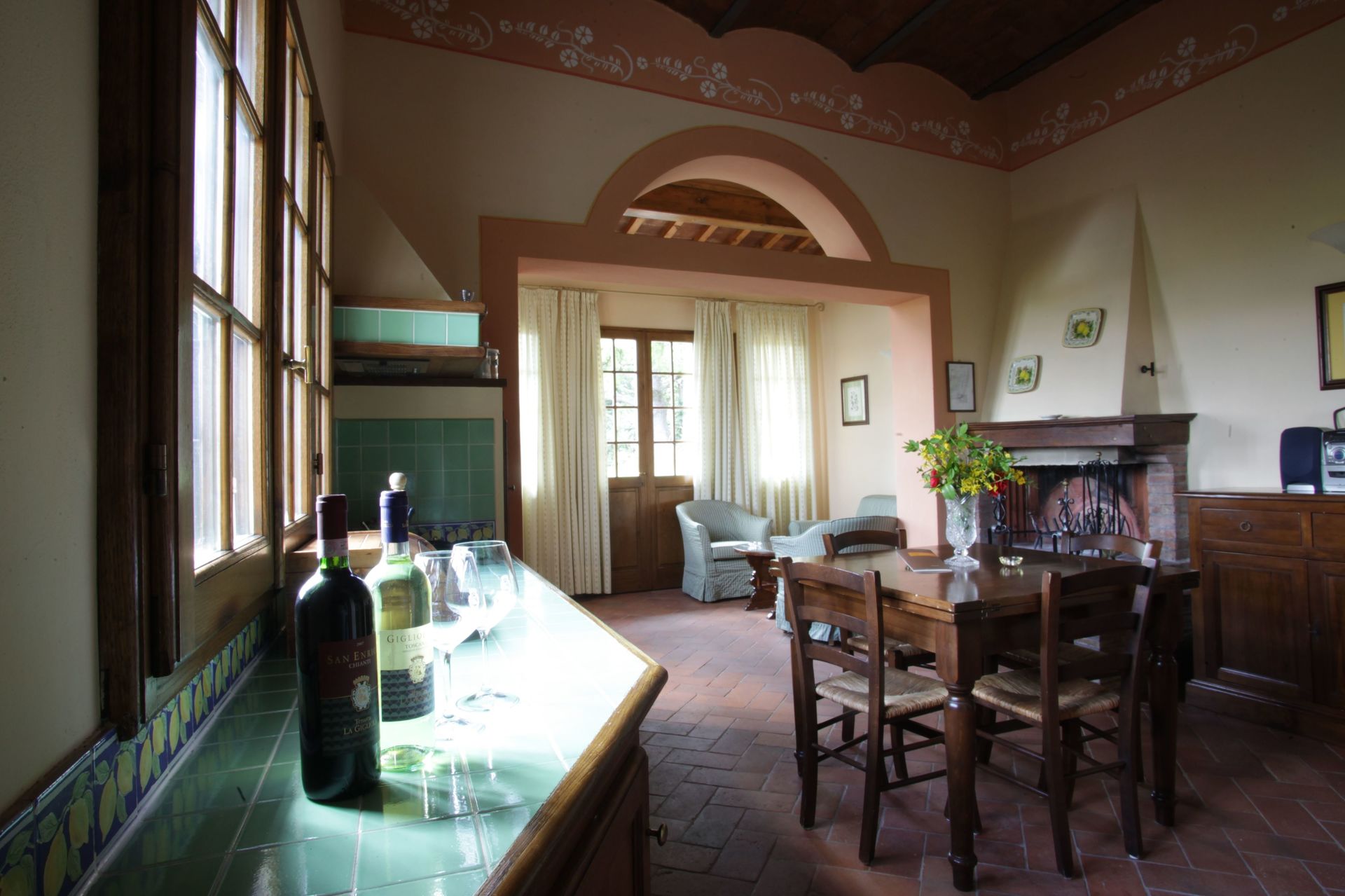 Limonaia est le dernier appartement de la ferme. Composé d'un salon/cuisine très lumineux, deux chambres, une avec lit double et une avec deux lits simples, deux salles de bains, une avec douche dans la baignoire, l'autre seulement avec cabine de douche.