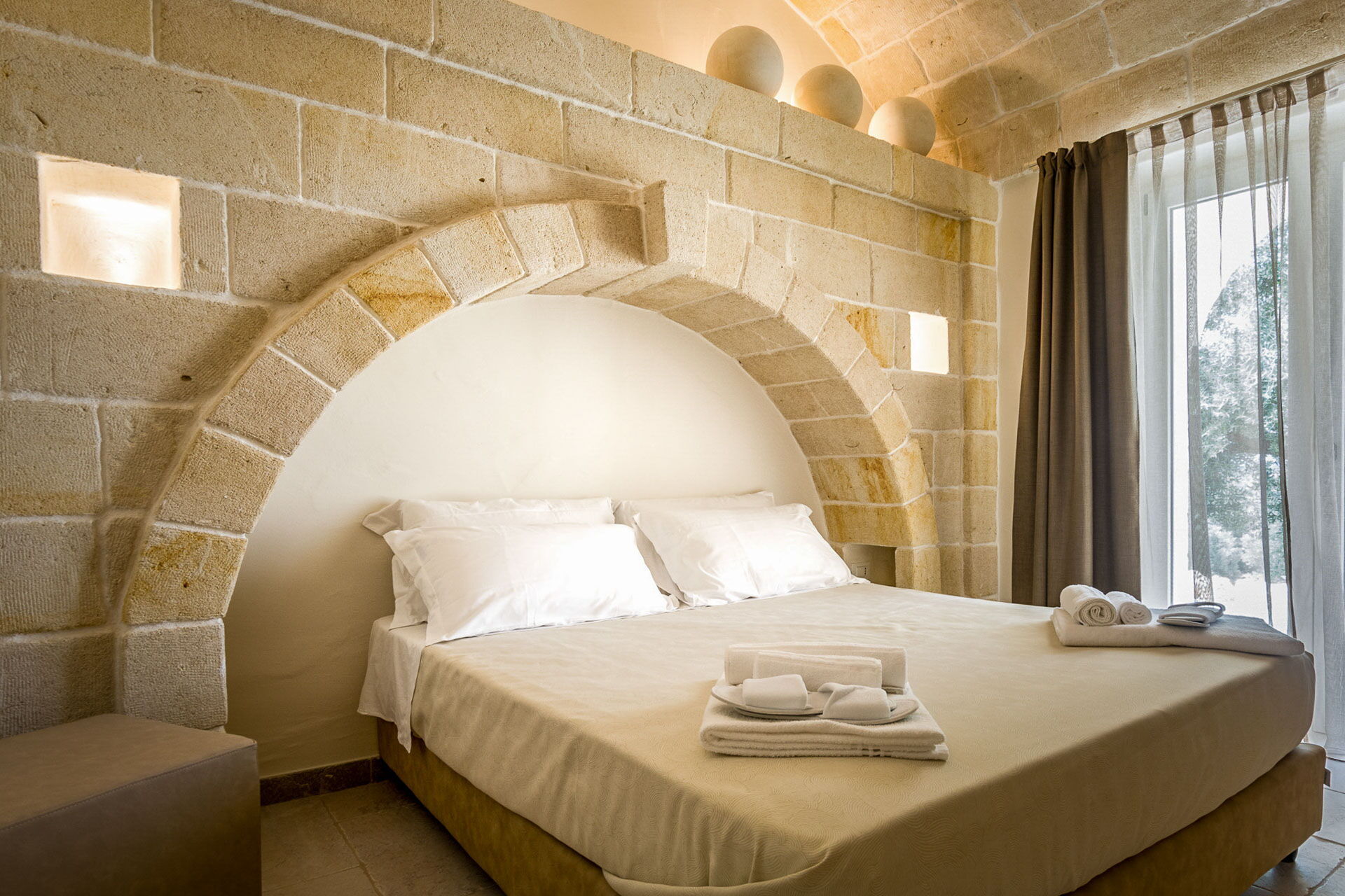 Spacious and cool, due to the thickness of the original stonewalls, which keep the trullo cool in summer and warm in winter.