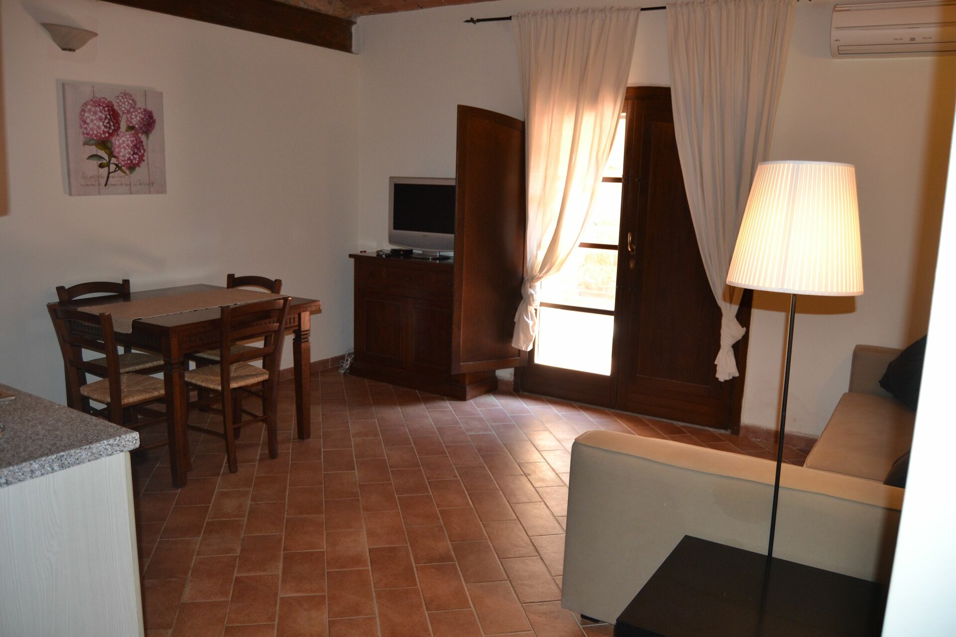 Manger avec les amis et la famille est une importante partie de la culture toscane. Profitez de la kitchen pour préparer les repas avec des produits locaux pendant vos vacances. La cuisine comprend machine à café et réfrigérateur, ainsi que, abondance de vaisselle et couverts pour un maximum de cinq personnes. Si vous préférez dîner «al fresco», il y a à votre disposition une terrasse complètement équipée où vous pourrez profiter du beau temps tout en mangeant en plein air.