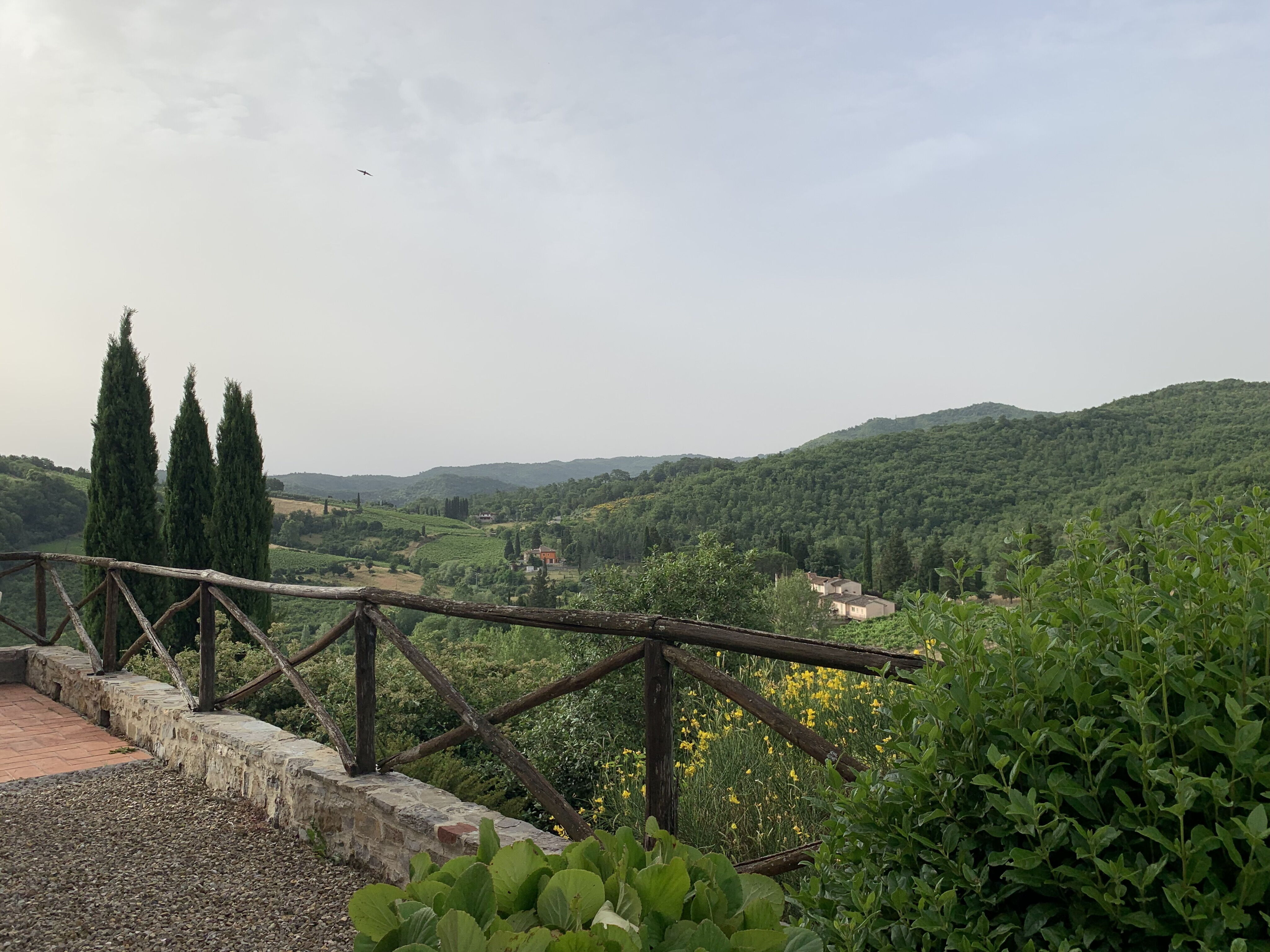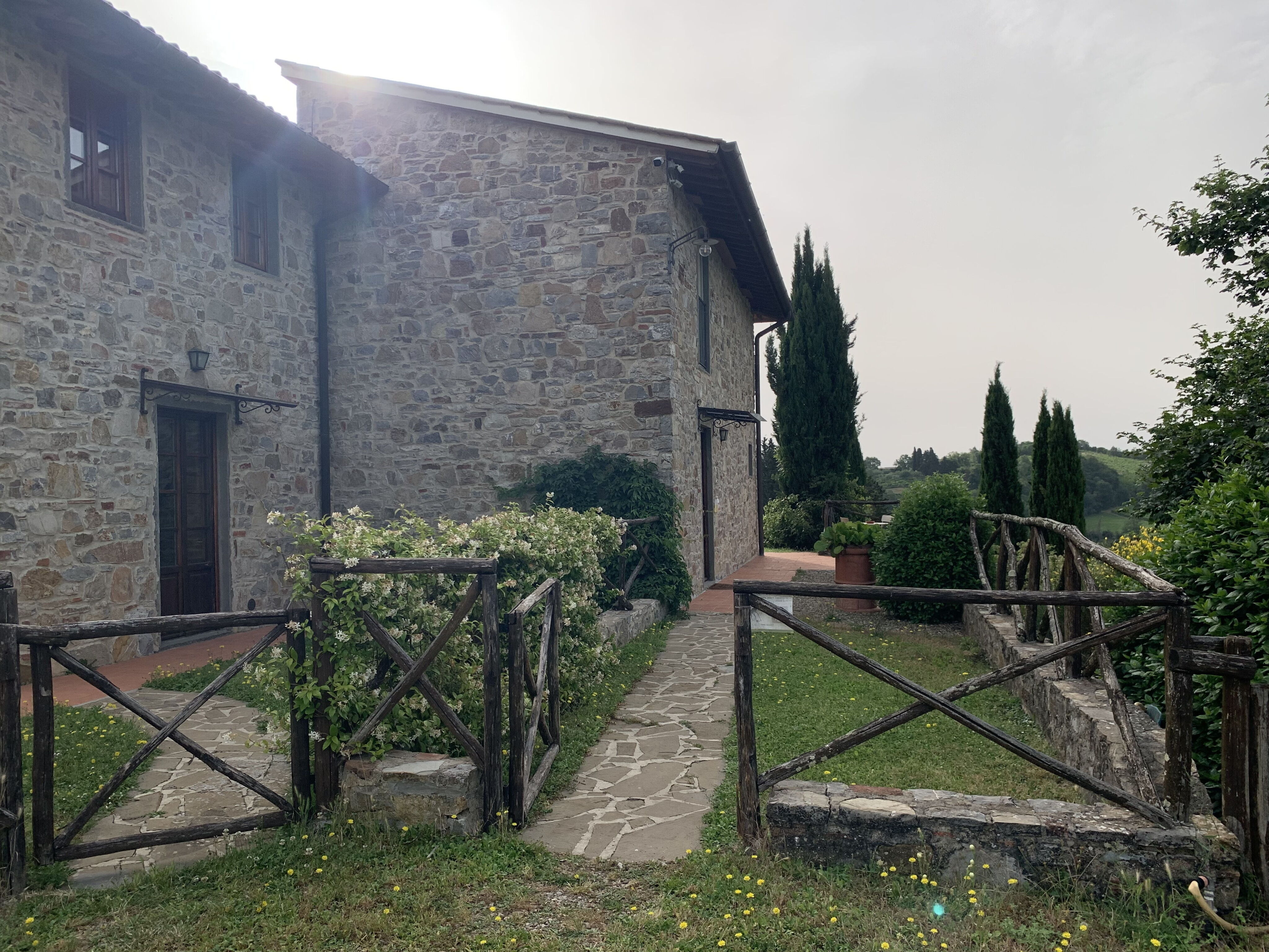 Maison bien équipée (bonne literie) avec terrasses et une vue incroyable au milieu des vignes, cypres et végétation.