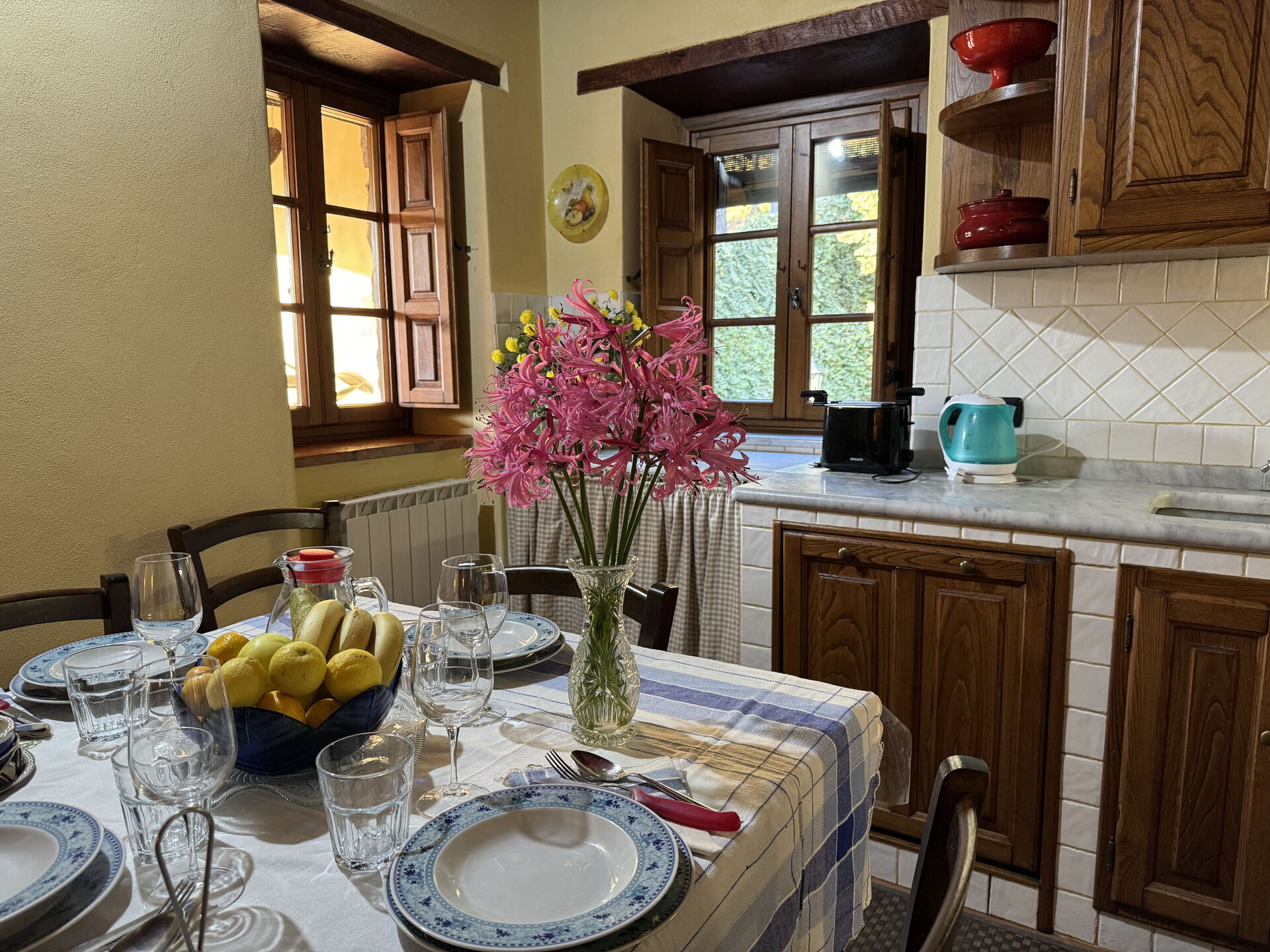 à votre arrivée vous serez accueillis par le propriétaire, ou une personne de sa confiance, et vous trouverez une jolie propriété, propre et bien entretenue, avec vue sur les collines parfaite pour des vacances relaxantes en Toscane. Pour votre plaisir vous trouverez une piscine privée où vous pouvez vous détendre tout en dégustant une bonne boisson fraîche après une fatigante journée de achats. Dîner avec les amis et la famille est une grande partie de la culture toscane. Profitez de la cuisine pour préparer les repas avec des produits locaux pendant vos vacances. La cuisine comprend machine à café, cuisinière et réfrigérateur, ainsi que, abondance de vaisselle et couverts pour un maximum de six personnes. Dînez «al fresco» comme un vrai toscan, le jardin est le cadre idéal pour apprécier la cuisine, s'amuser en famille, et profiter du jolie beau temps toscan.