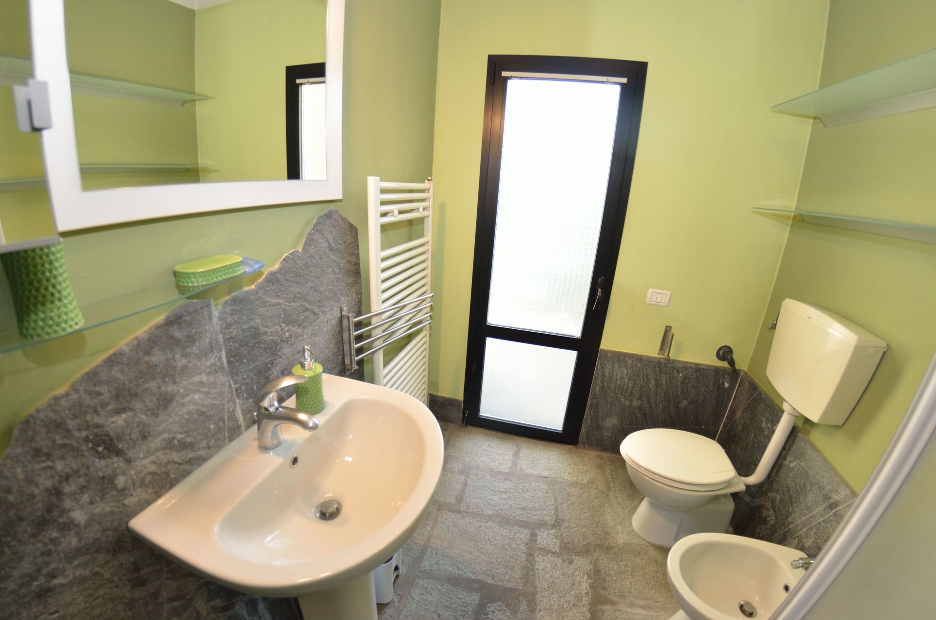 salle de bain: bassin, wc, bidet, douche.