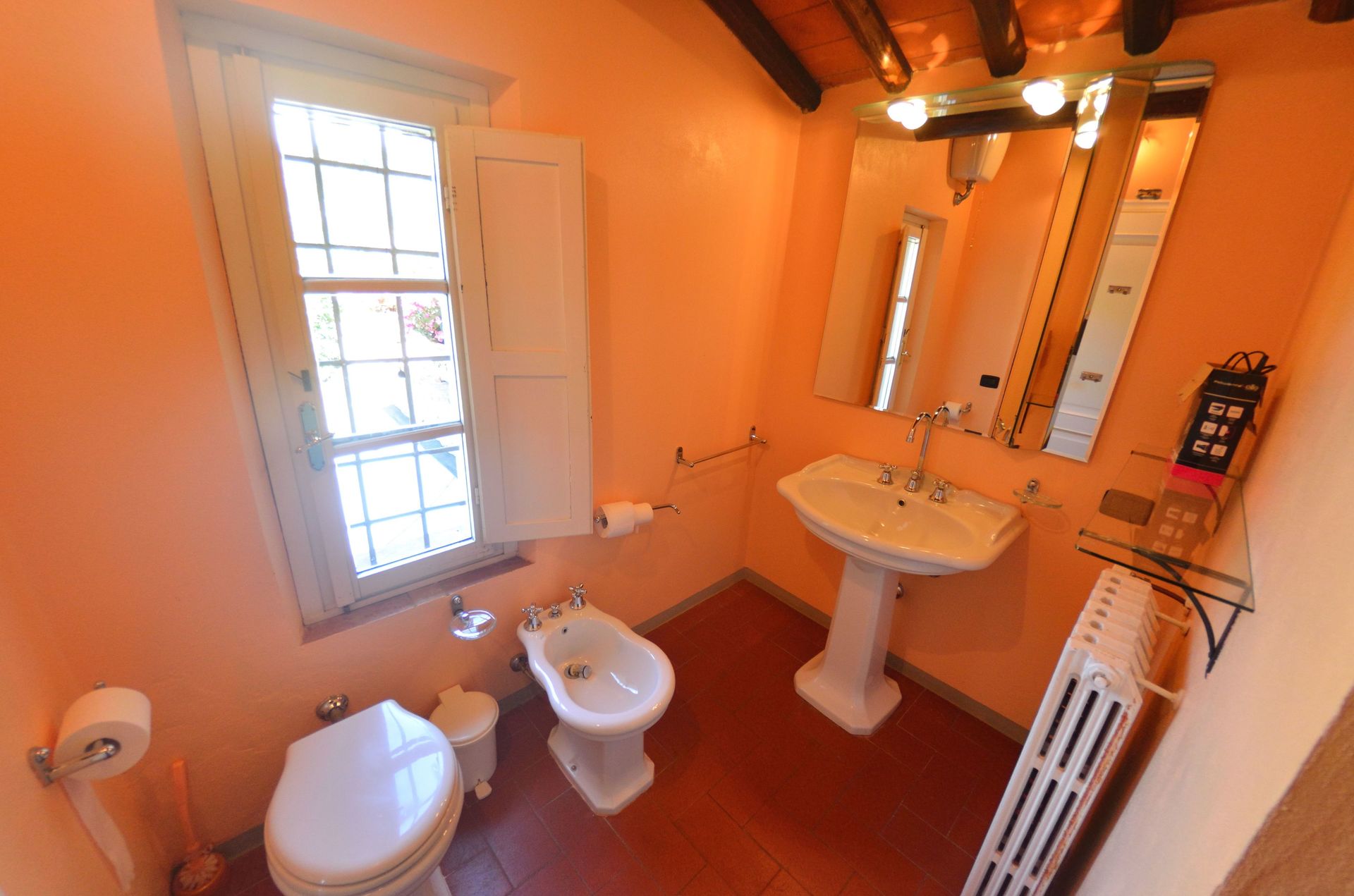 salle de bain 1: bassin, wc, bidet, douche.