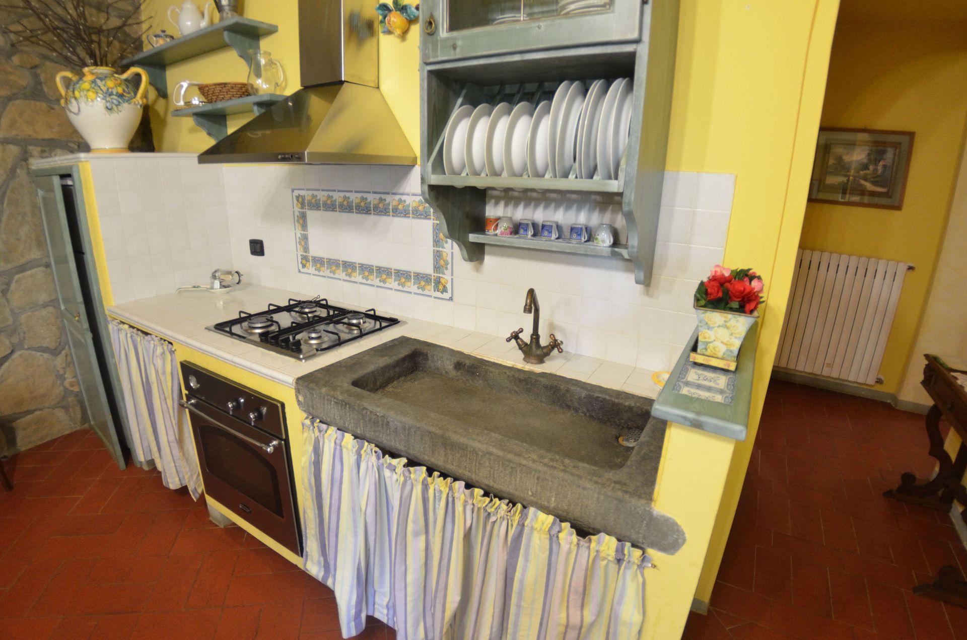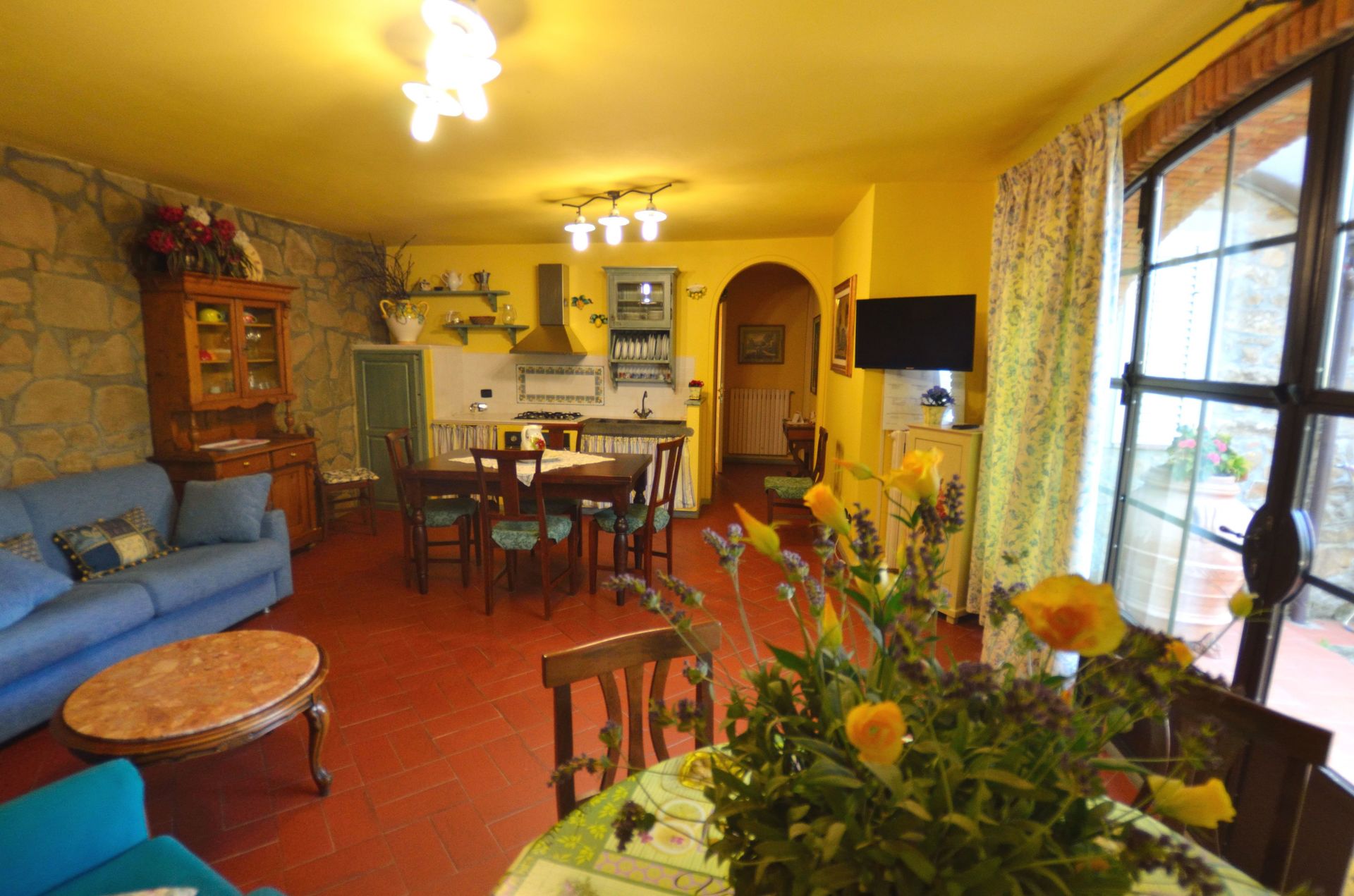 Il y a une cuisine y compris cuisinière et réfrigérateur, ainsi que, assez de vaisselle et couverts jusqu'à six personnes. Dînez «al fresco» comme un vrai toscan, le jardin est le cadre idéal pour apprécier la cuisine, s'amuser en famille, et profiter du jolie beau temps toscan.