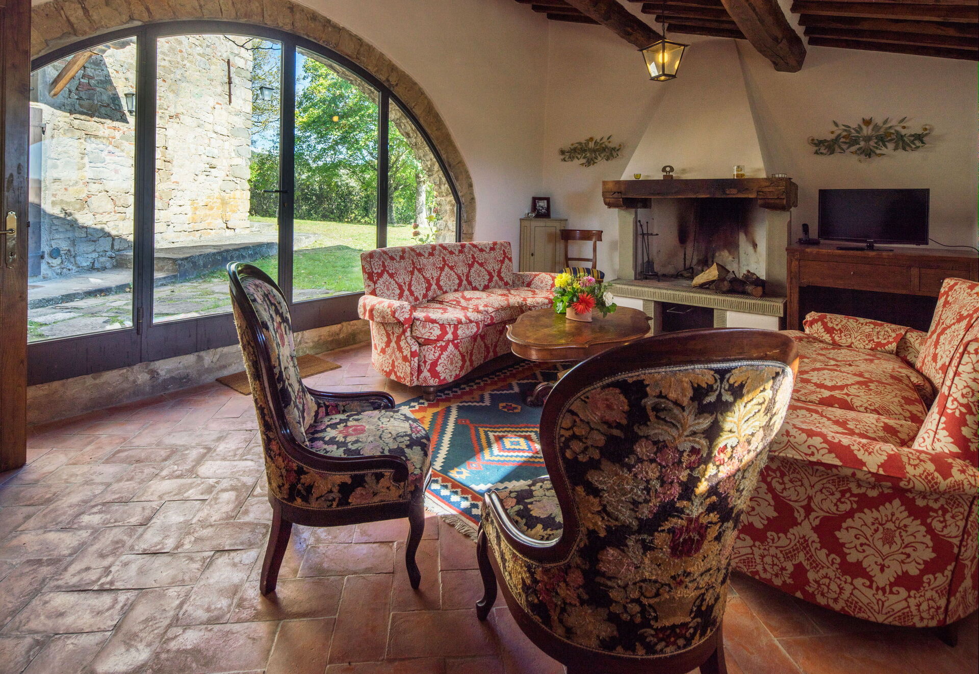 Salon 1: canapé (personnes: 6), deux fauteuils, internet WIFI, moustiquaires, sortie sur le jardin.