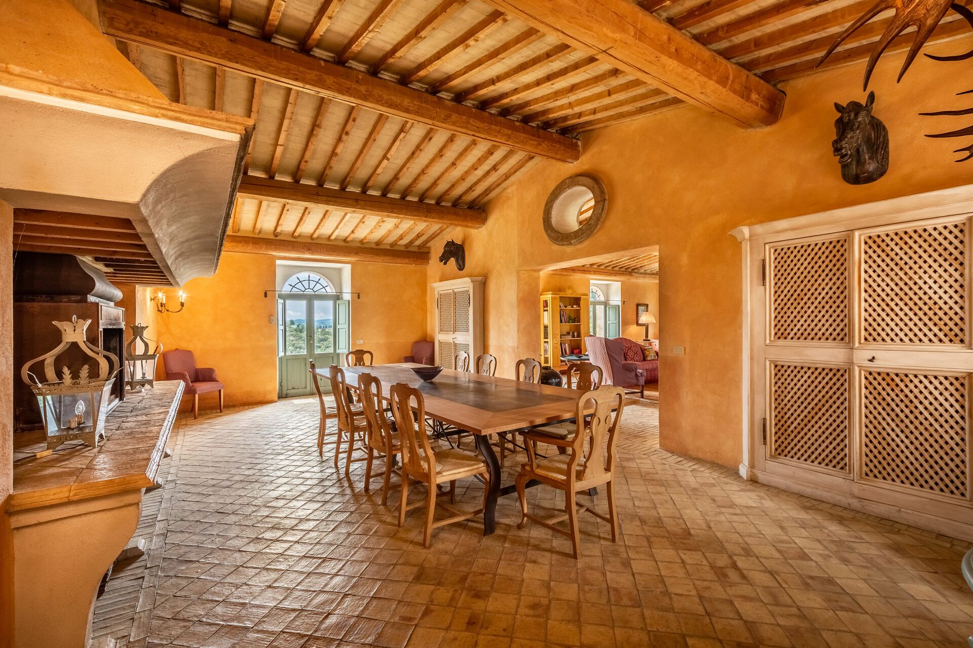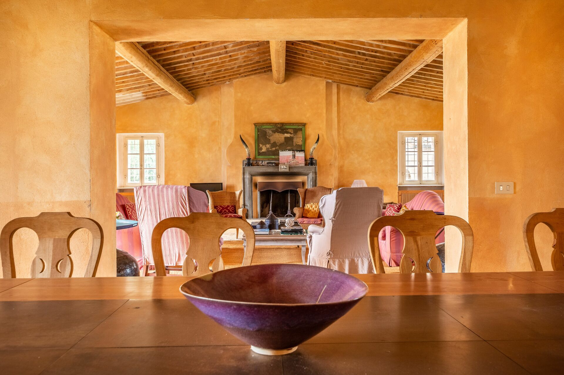salle à manger: table à manger (personnes: 16), internet WIFI, cheminée, sortie sur le jardin, sortie sur le patio.