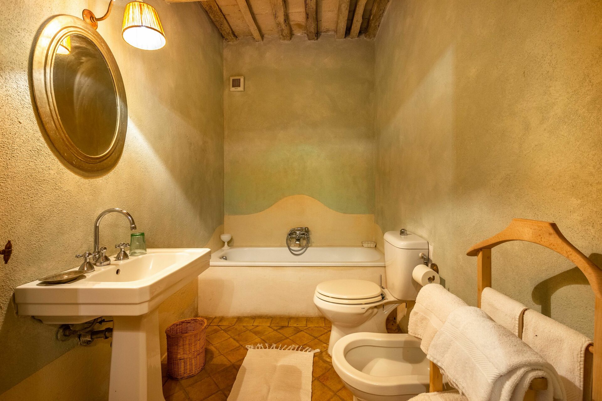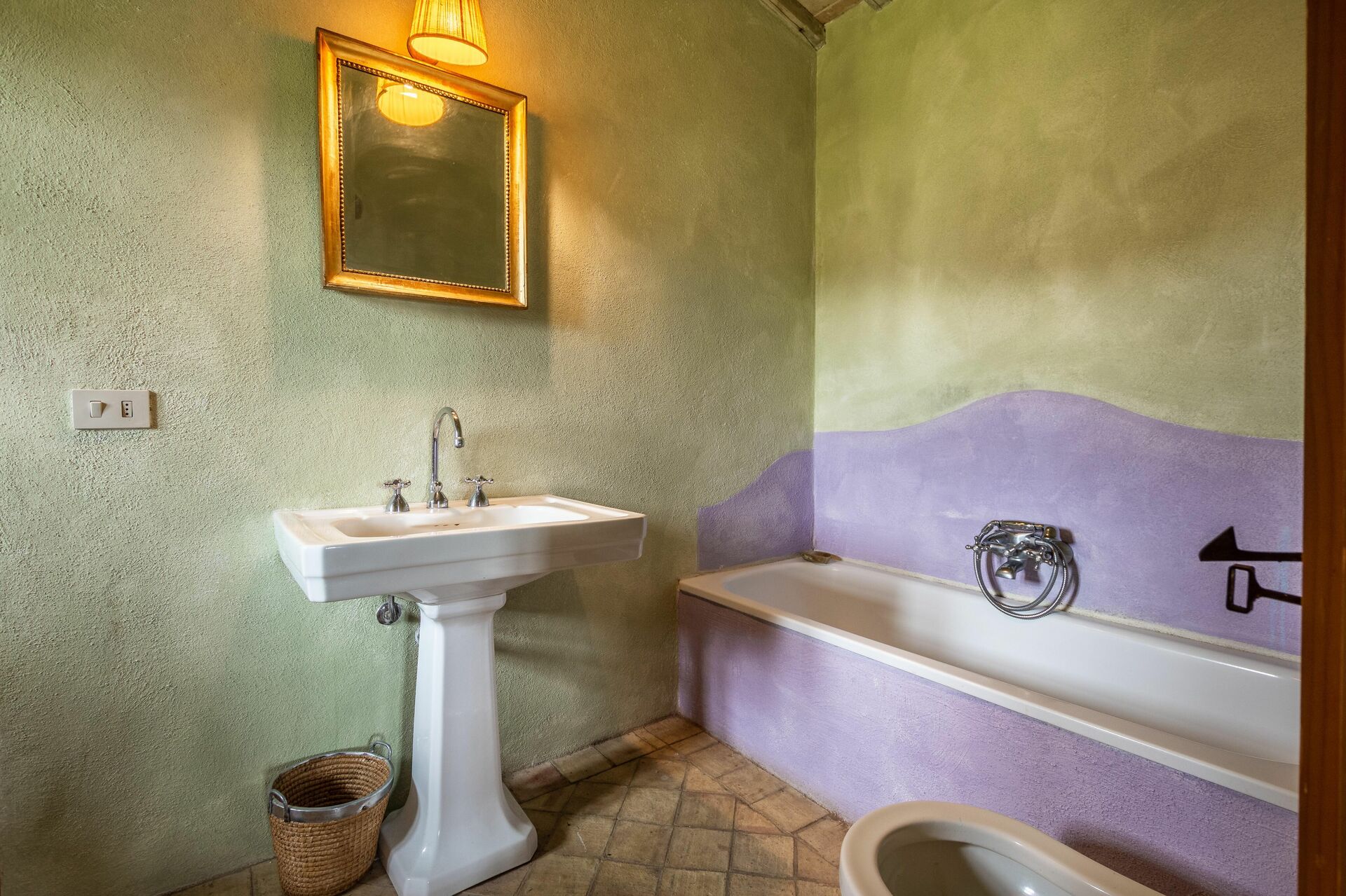 chambre avec salle de bain 2: lit double, internet WIFI, climatisation, bassin, wc, bidet, bagnoire.