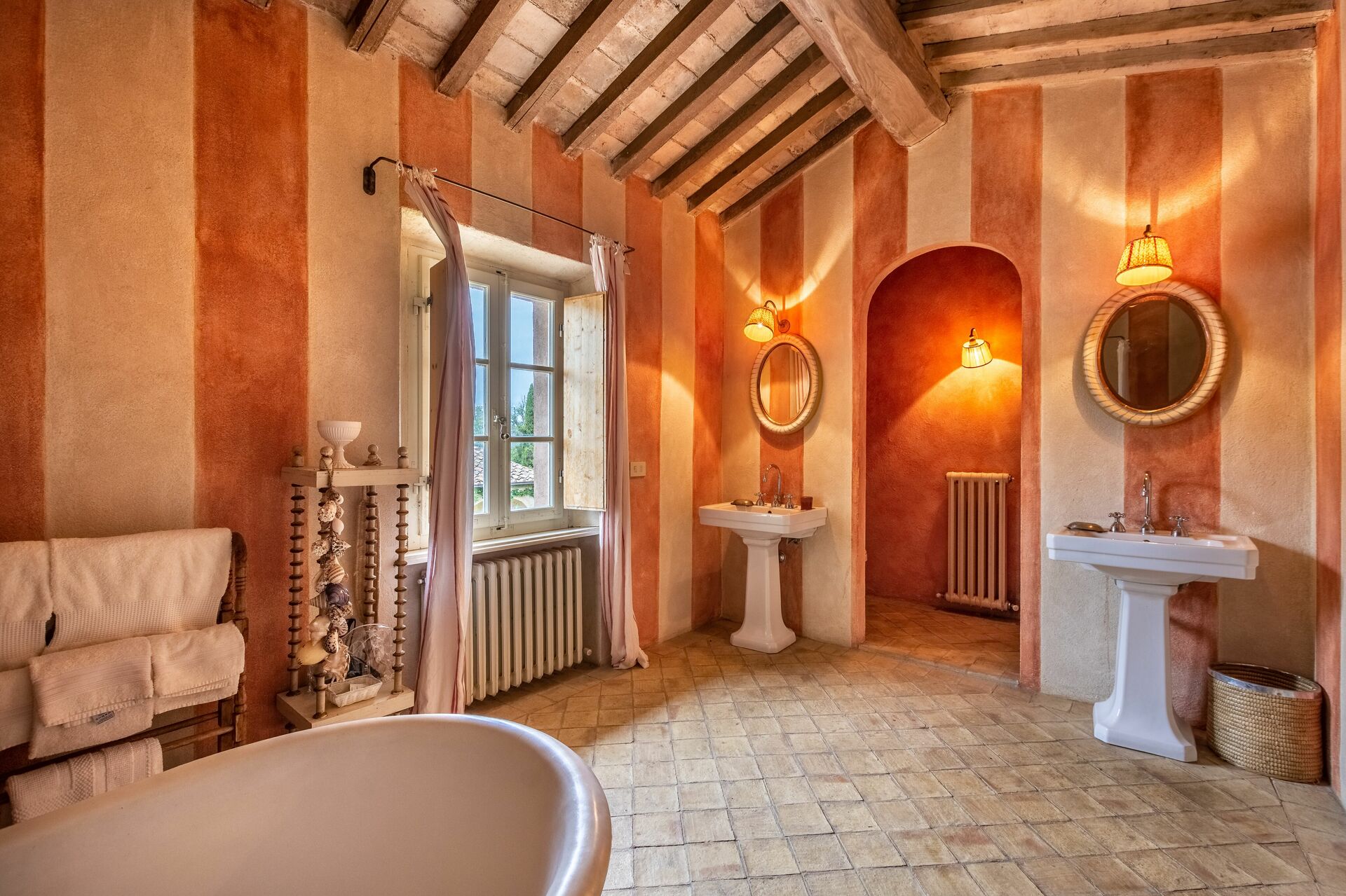 La plupart des gens aiment visiter les villes et les villages tout près pendant les vacances, donc pour votre référence vous trouvez ici est une liste des lieux populaires avec les distances (à vol d’oiseau) en voiture depuis la propriété:Montepulciano 48 km, Sienne 70 km, Cortone 82 km, Arezzo 83 km et Greve In Chianti 109 km.