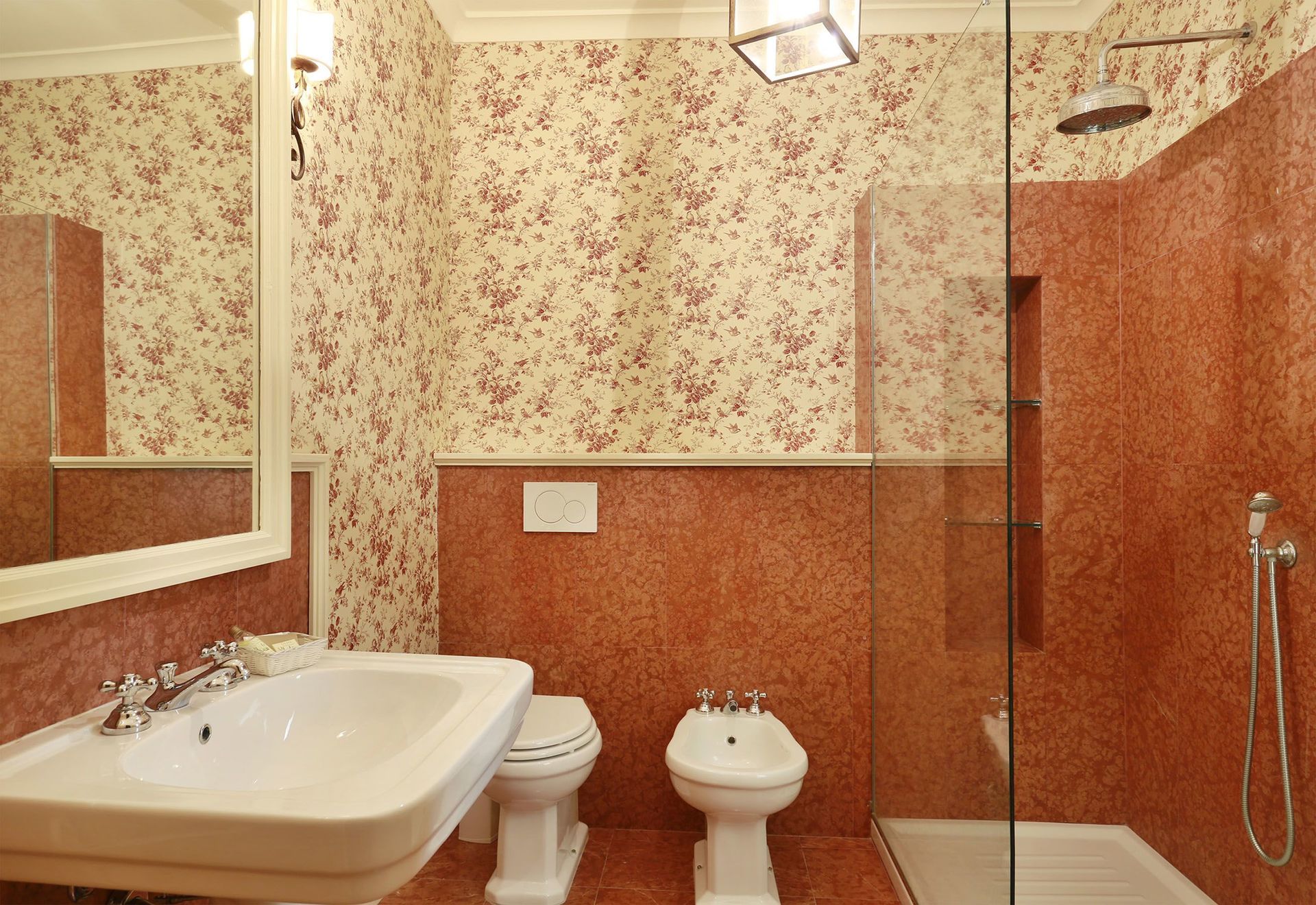 salle de bain 3: bassin, wc, bidet, douche.