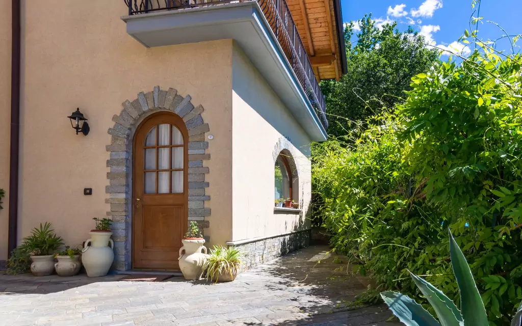 Les espaces extérieurs de « Fulvia » invitent à la détente dans un cadre privé et bien entretenu. Le terrain clôturé s'étend sur la totalité des 250 m² de la propriété, offrant un espace généreux pour profiter de l'air frais entouré d'une pelouse luxuriante et d'arbres matures qui procurent ombre naturelle et intimité. L'accès à la maison se fait par un chemin en escalier composé de 7 marches, ajoutant une touche de charme à l'approche. Le jardin se prête idéalement aux moments de détente en plein air, qu'il s'agisse de flâner dans la verdure ou simplement de savourer l'atmosphère paisible du quartier résidentiel qui caractérise ce coin du nord de l'Italie.