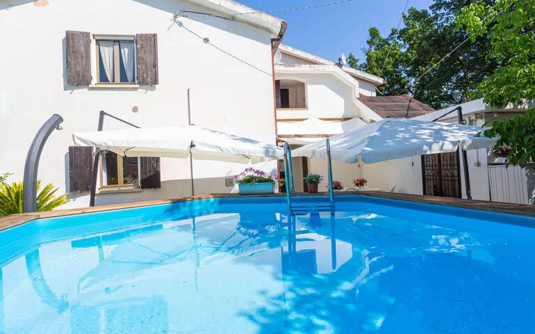 Nichée parmi les arbres et les prairies ondulantes de la campagne pittoresque de Cellino Attanasio, en Italie, « Le Querce » est une maison de vacances rustique et accueillante, offrant une véritable retraite paisible et authentique. Cette propriété s'adresse à ceux qui recherchent une véritable évasion rurale entourée par la nature, alliant le charme traditionnel à une atmosphère chaleureuse. La maison bénéficie d'un jardin privé clôturé de 700 m² et d'une piscine hors sol disponible en saison.