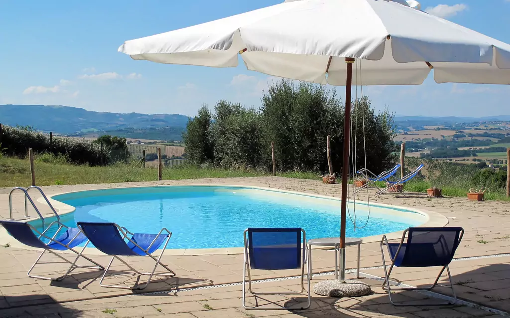 Maison de campagne "A Casa di Nadia". 3 appartements dans la même entité. À 4 km du centre de Marsciano, à 20 km du centre de Todi, à 33 km du centre de Perugia, à 50 km du lac, dans la verdure. En commun: terrain 35'000 m2 avec arbres, champ, piscine en forme d’haricot (12 x 6 m, profondeur 150 cm, disponibilité saisonnière: 01.Jun. - 21.Sep.). Douche extérieure, ping-pong, terrasse, meubles de jardin, barbecue. Accès en voiture par un chemin de 100 m de long (chemin non goudronné). Place de parking sur le terrain. Magasins 4 km, plage de sable "Castiglione del Lago" 50 km. Veuillez noter: le propriétaire habite dans la même maison. Le propriétaire a un chien.