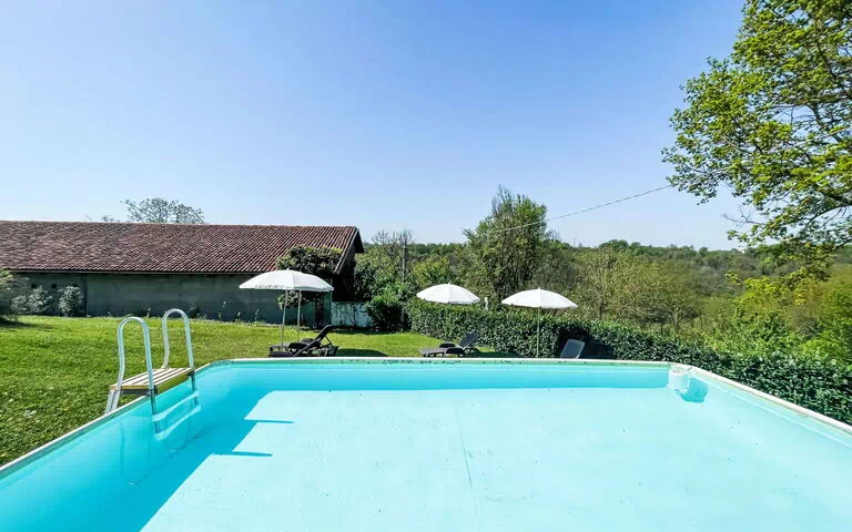 Montegrosso di Cinagli à 12 km de Asti: Cottage "Il Cavaliere", environné par les arbres et prés. À 10 km du centre d'Asti, à 500 m du centre de Montegrosso Cinaglio, à 45 km du centre de Turin. En commun: terrain 1'000 m2 (clôturé), jardin avec plantes et arbres, champ, cour. A usage privé: piscine (hors sol) (5 x 3 m, profondeur 120 cm, disponibilité saisonnière: 01.Avr. - 15.Oct.). Infrastructures de la Maison: terrasse sur le toit. Place de parking près de la maison sur le terrain. Supermarché 5 km, arrêt de bus 2 km, gare ferroviaire "Asti" 10 km. Le propriétaire habite dans une partie de maison indépendante.