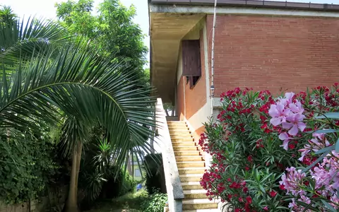 Immeuble "Gli Oleandri". 4 appartements dans la même entité. À 8 km du centre de Nettuno, à 5 km du centre d'Anzio, à 57 km du centre de Roma, dans un quartier résidentiel, à 800 m de la mer, à 800 m de la plage. A usage privé: terrain 150 m2 (clôturé) avec pelouse et plantes. Sentier en escalier jusqu'à la maison. Place de parking sur le terrain. Supermarché 3 km, arrêt de bus 400 m, gare ferroviaire "Villa Claudia" 2 km, plage de sable 800 m. Veuillez noter: voiture deconseillée.