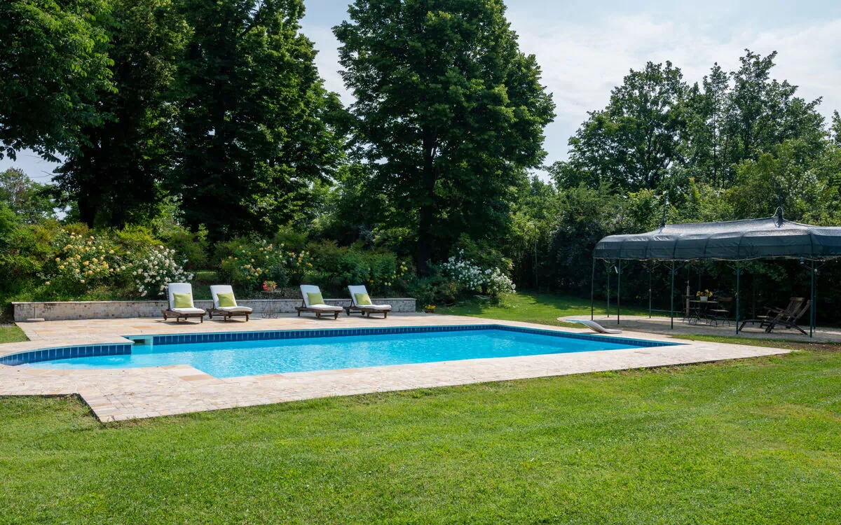 Belle maison de campagne "Villa Remotti", du 19ème siècle, environnée par les prés, champs et vignobles. Location composée d'un bâtiment principal et d'une annexe, à 28 km du centre d'Asti, en bordure de la localité, à 2 km du centre de Fubine, à 16 km du centre d'Alessandria, situation tranquille, ensoleillée, surélevée. En commun: terrain 14 ha, piscine (10 x 4 m, profondeur 130 cm, disponibilité saisonnière: 01.Mai. - 24.Oct.). Douche extérieure, ping-pong. A usage privé: terrain 1'000 m2 (clôturé), jardin avec pelouse. Accès en voiture par un chemin de 300 m de long (chemin non goudronné). Place de parking près de la maison sur le terrain. Supermarché 2 km, arrêt de bus 2 km, gare ferroviaire "Alessandria" 16 km. Terrain de golf (36 trous) 3 km. Attractions à proximité: Asti 29 km, Alba 35 km, Turin 80 km. Veuillez noter: voiture recommandée. Le propriétaire habite dans une partie de maison indépendante.