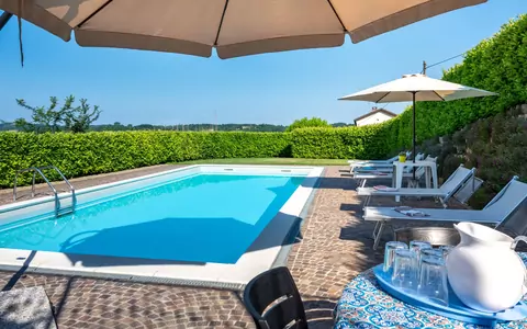 Cottage confortable "Marmorito", jumelé, environné par les prés et champs. À 3 km du centre de Portacomaro, à 9 km du centre d'Asti, à 40 km du centre d'Alba, quartier résidentiel. A usage privé: terrain 3'000 m2 (clôturé), jardin entretenu avec pelouse et plantes, piscine (12 x 5 m, profondeur 100 - 200 cm, disponibilité saisonnière: 05.Avr. - 30.Oct.). Douche/WC dans l'espace piscine, douche extérieure, entretien de la piscine par le propriétaire/jardinier. Infrastructures de la Maison: salle fitness, baby foot. Place de parking près de la maison sur le terrain. Magasins 3 km, supermarché 6 km, arrêt de bus 1.7 km, gare ferroviaire "Asti" 9 km. Terrain de golf (18 trous) 18 km. Veuillez noter: voiture recommandée. Certaines parties de la maison sont fermées et inoccupées.