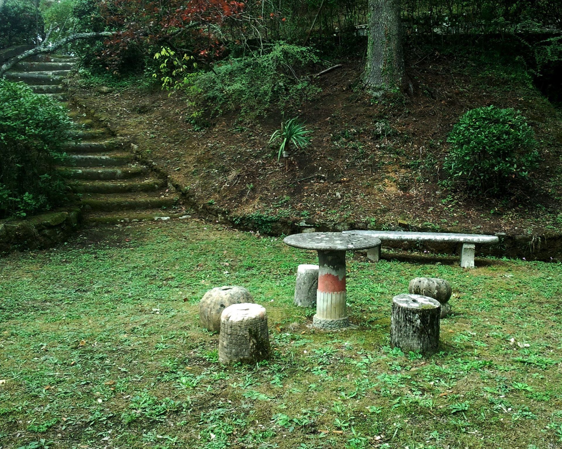 Promenez-vous dans le magnifique parc botanique, l'occasion de découvrir les différents "pensatoi" cachés, tables et chaises en pierre qui offrent un lieu retiré et isolé pour être totalement immergé dans la nature.