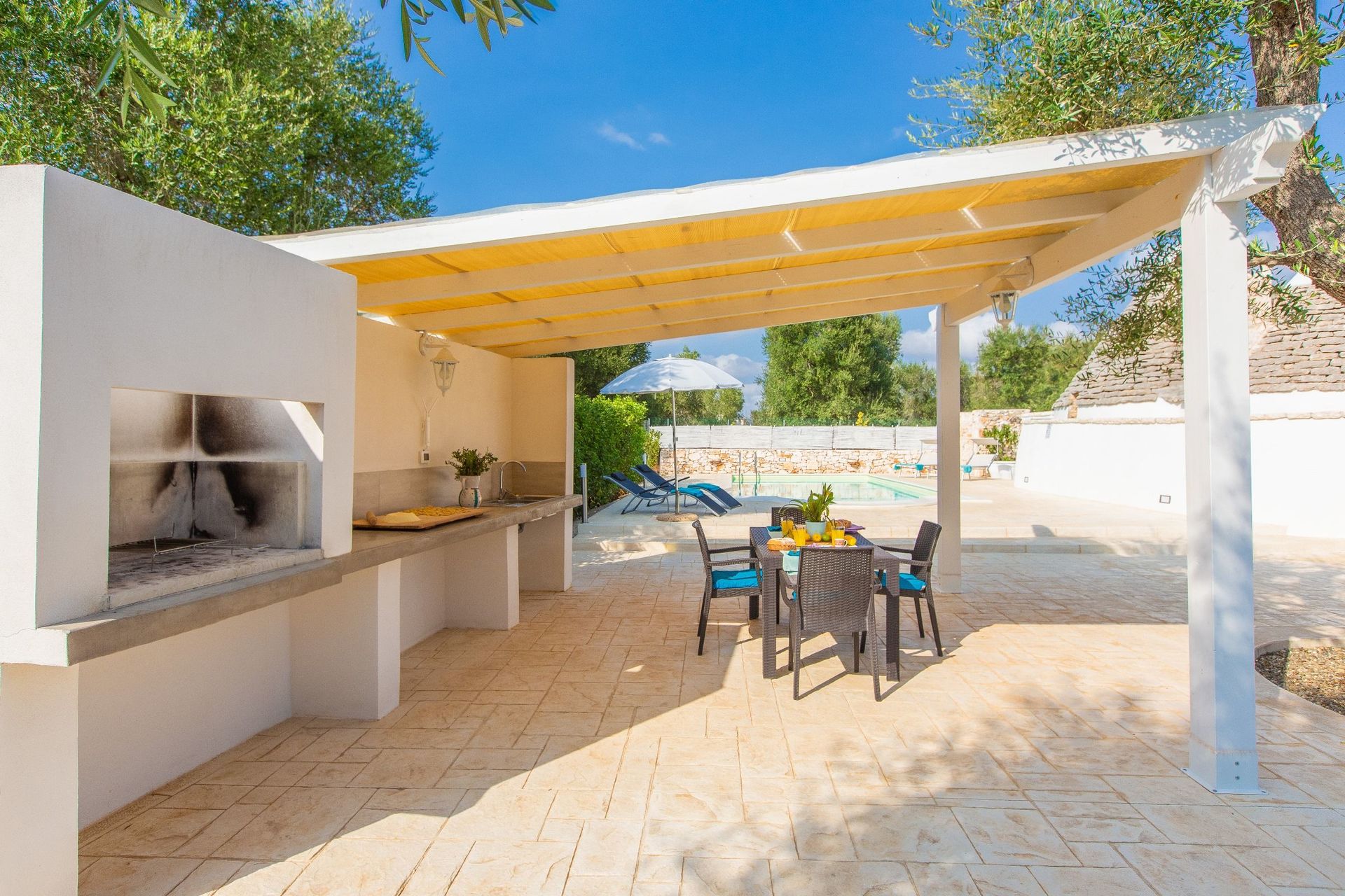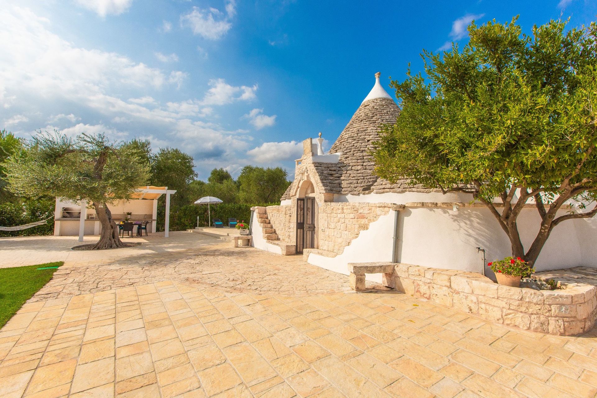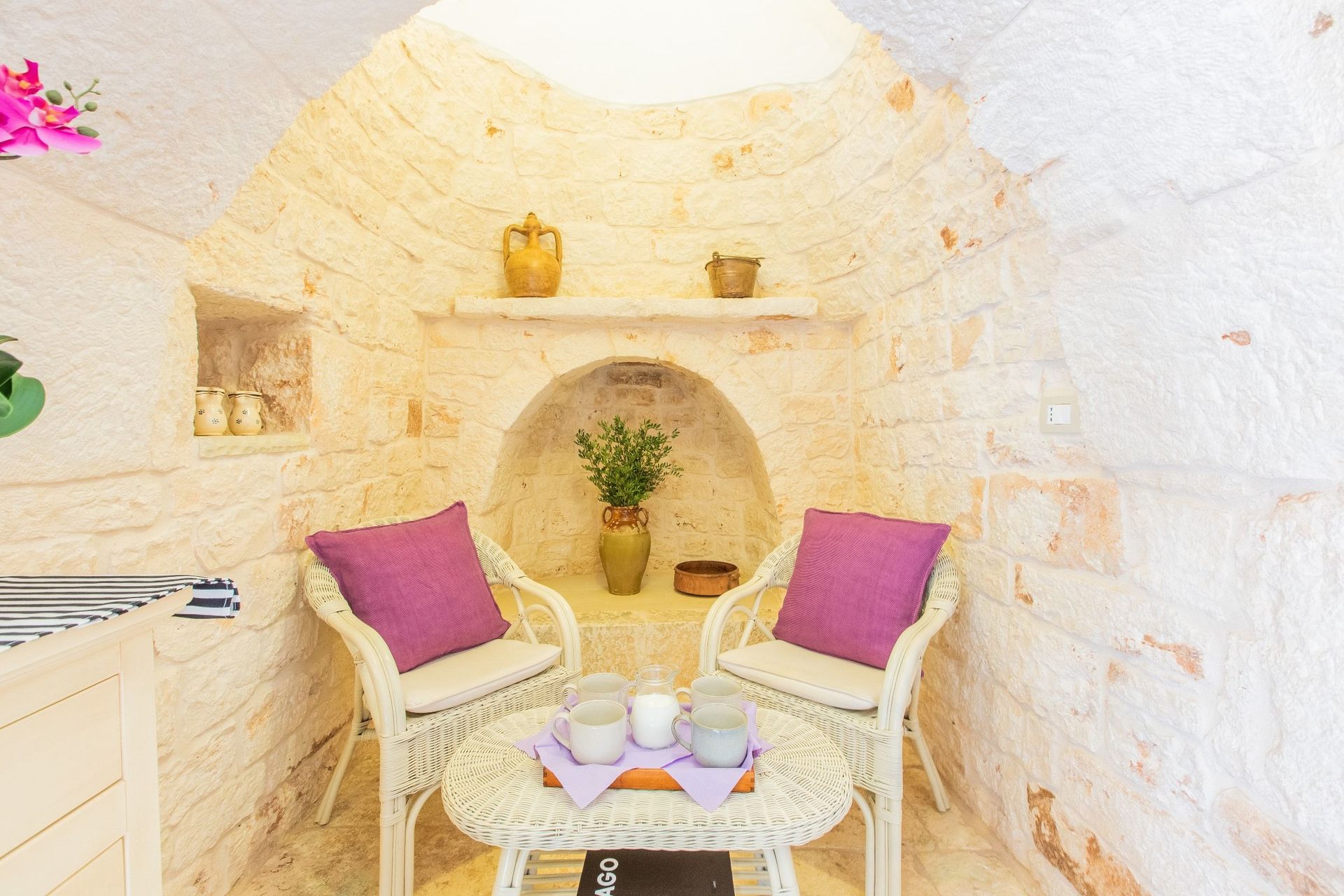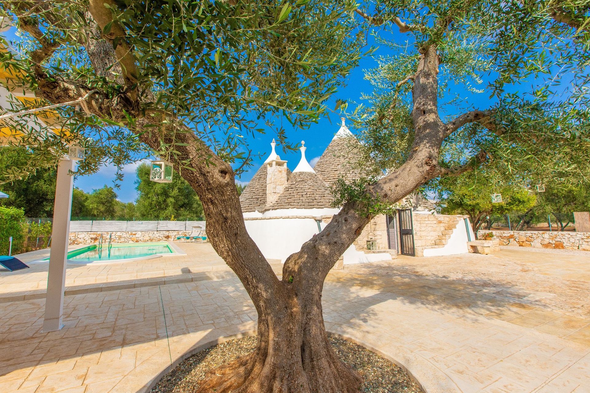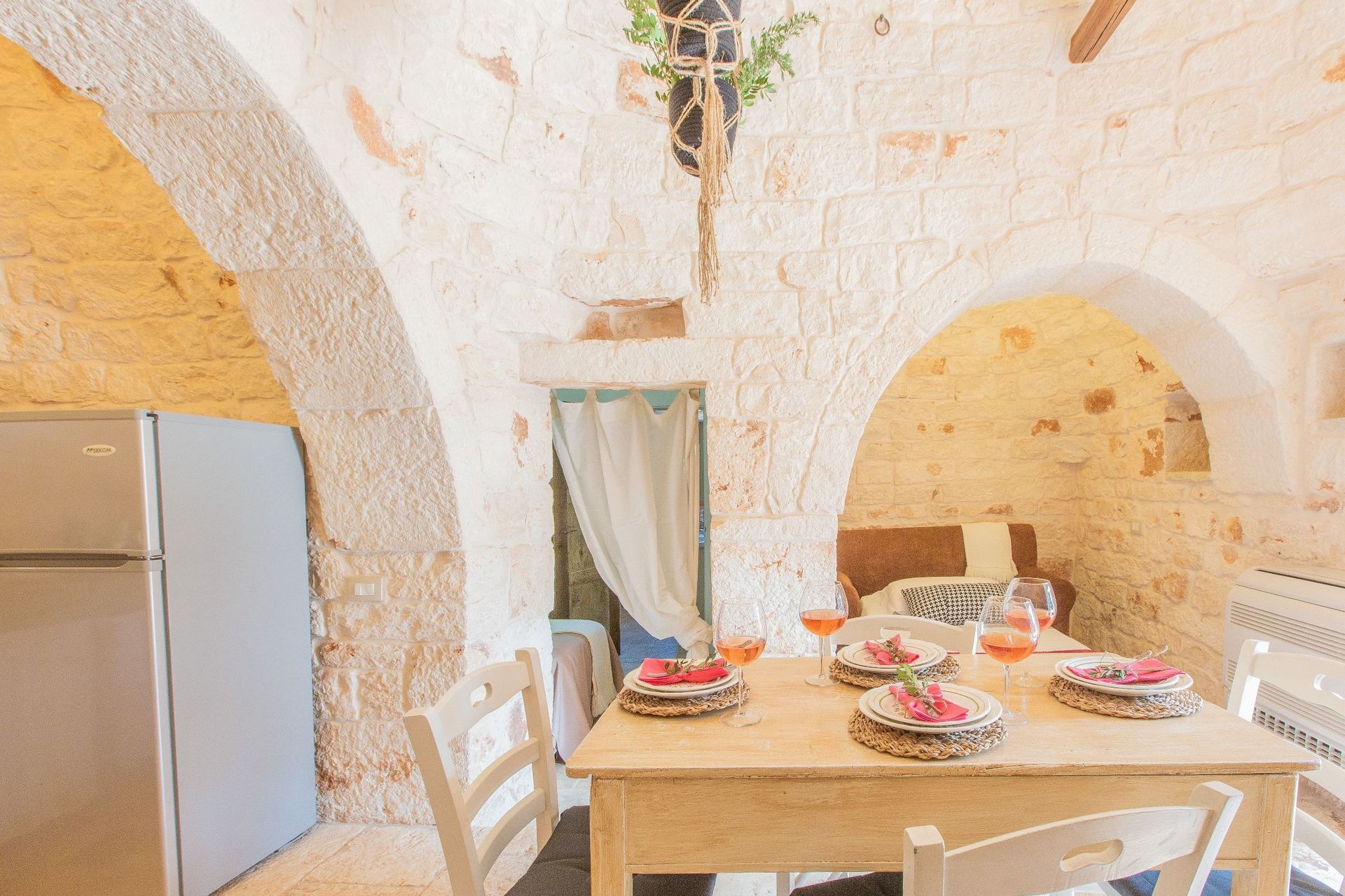 à l'arrivée à Trullo Del Mandarino vous trouverez une jolie propriété, propre et bien entretenue, parfaite pour des vacances calmes en Pouilles. Peu importe comment vous passez vos journées... shopping, visites, visites de musées ou tout simplement en vous baladant à la campagne, quand vous arrivez à la maison, vous pouvez vous délasser à la piscine avec votre famille et vos amis et conclure au mieux un autre jour de vacances en Pouilles. Si vous aimez cuisiner pour la famille et les amis il y a une cuisine bien equipée y compris four micro-onde, grille-pain et réfrigérateur, ainsi que, assez de vaisselle et couverts jusqu'à quatre personnes. Si vous préférez dîner «al fresco», il y a à votre disposition une véranda entièrement meublée où vous pourrez profiter du beau temps tout en mangeant en plein air.