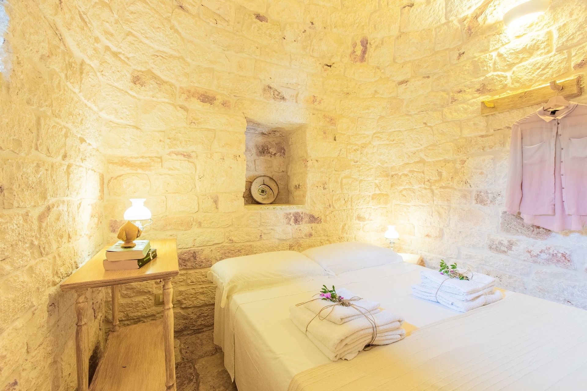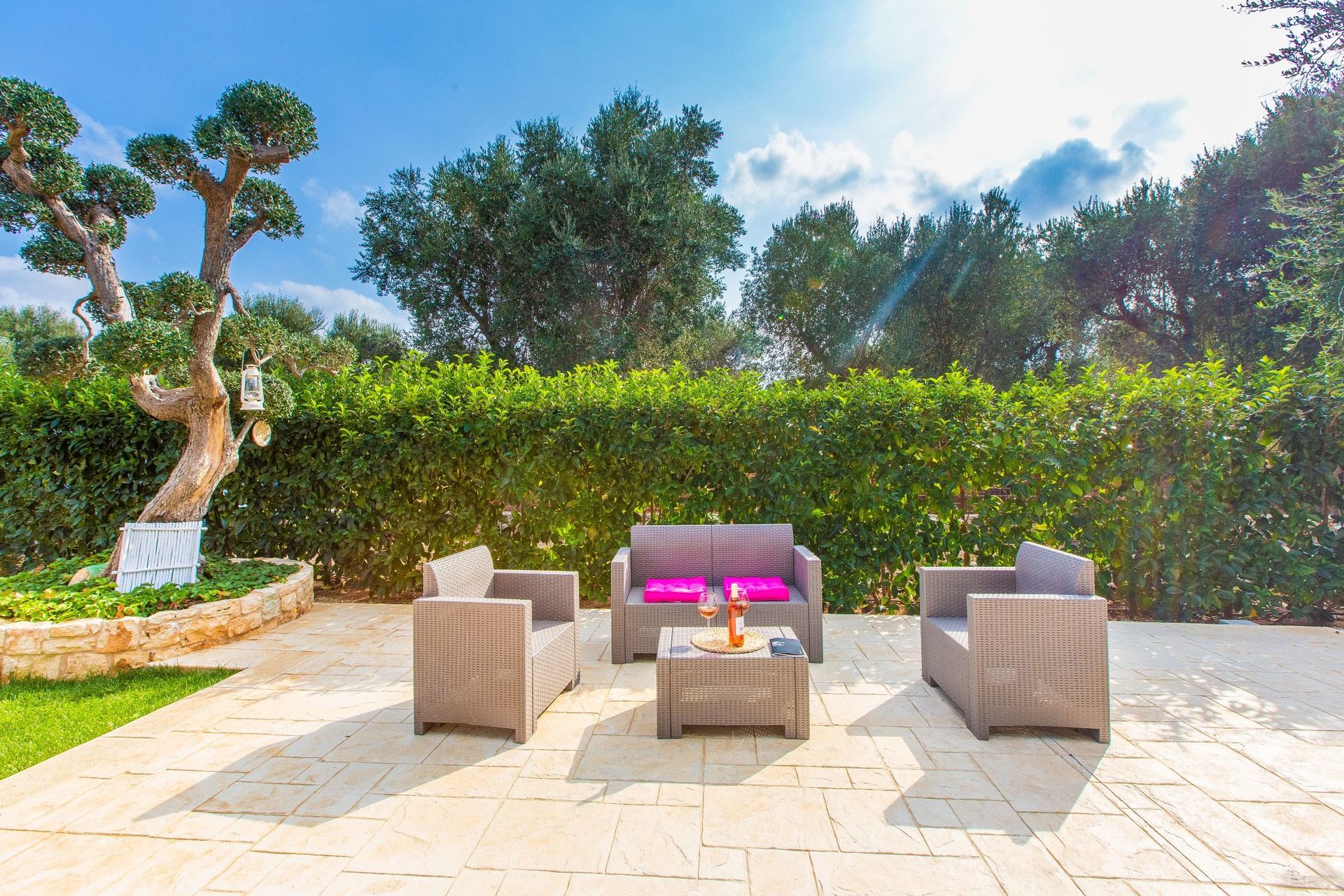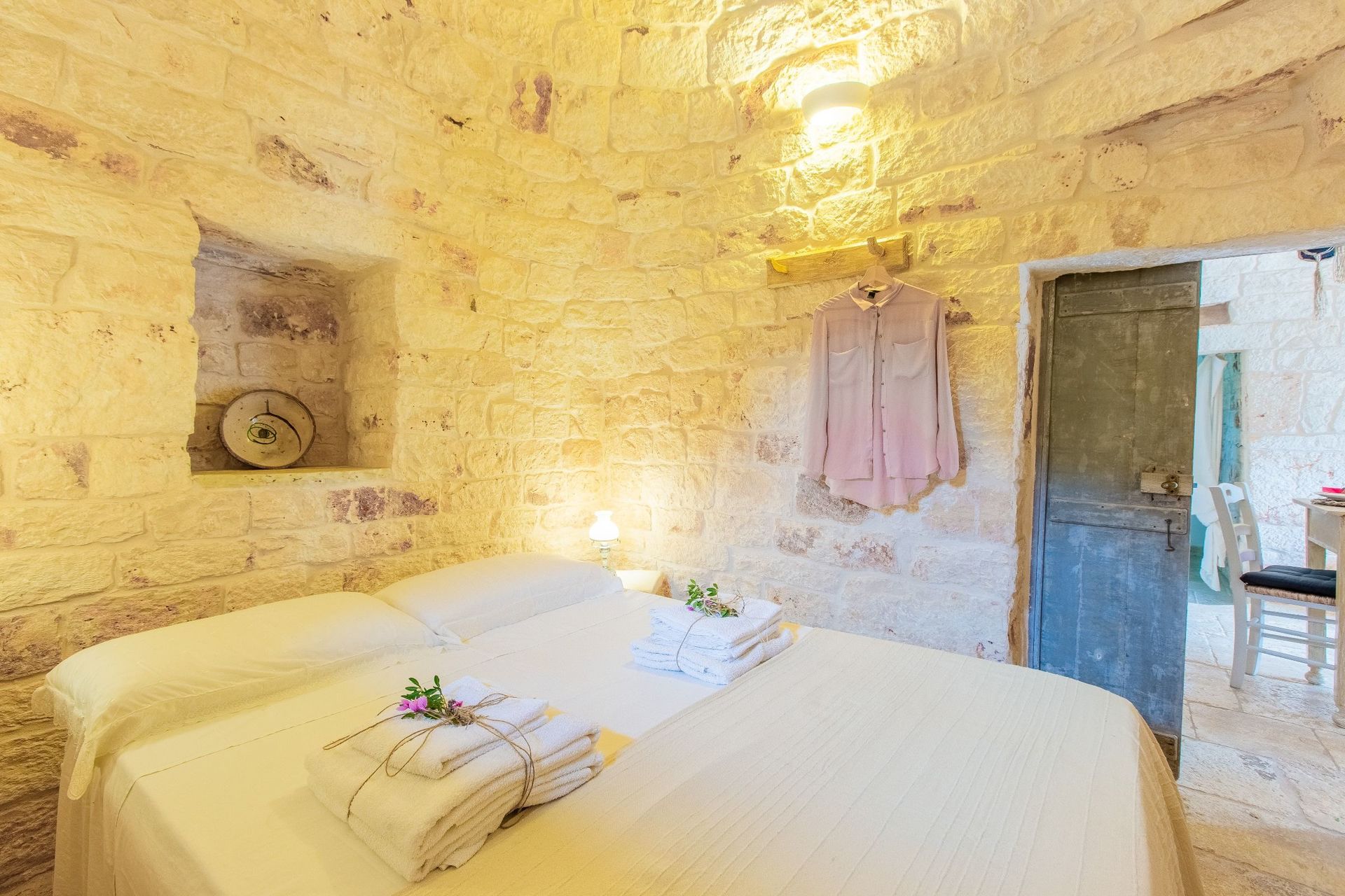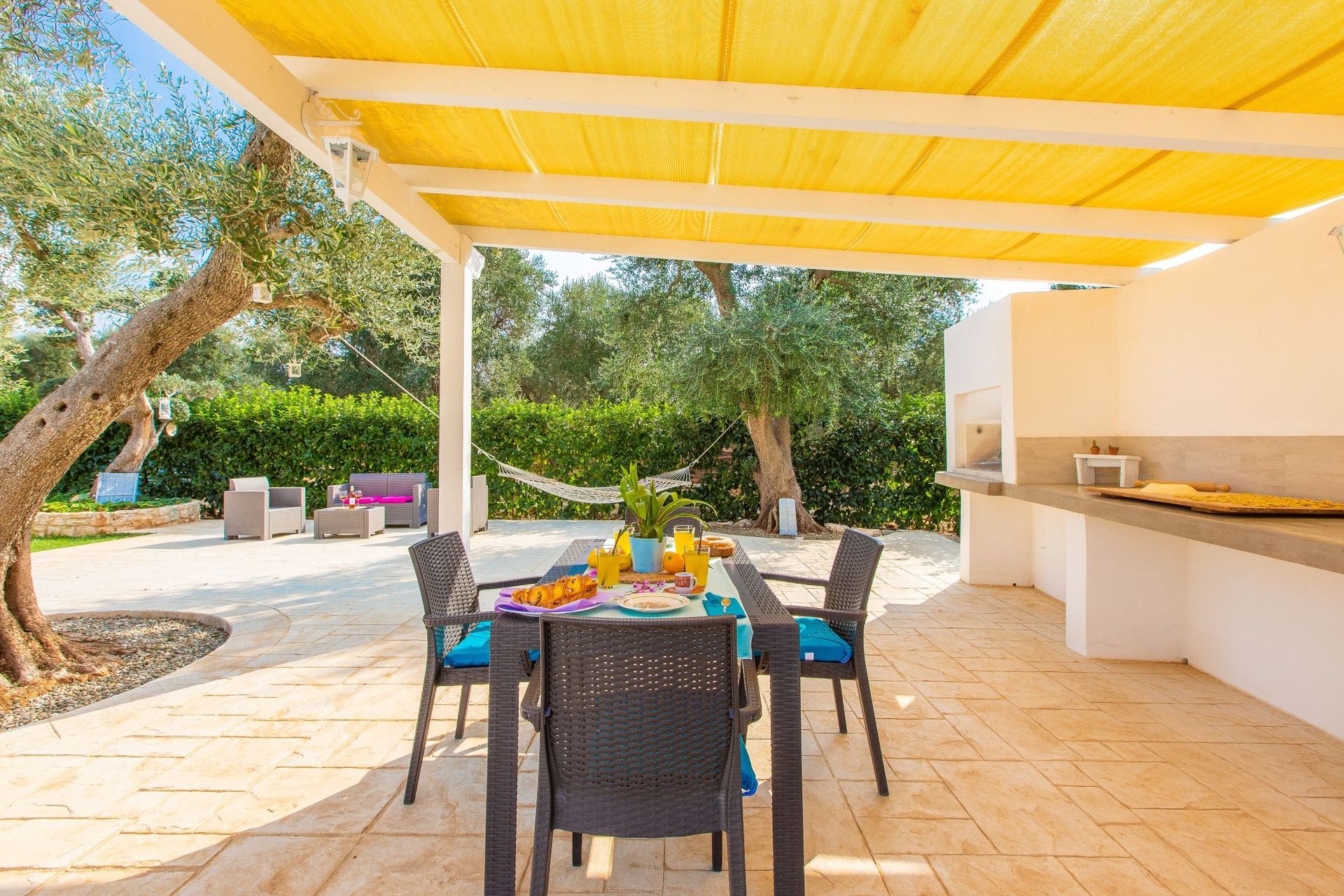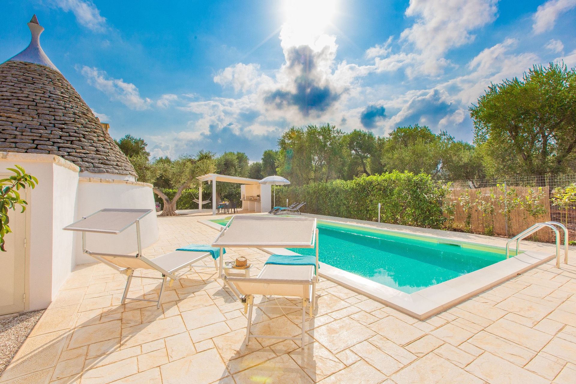 à l'arrivée à Trullo Del Mandarino vous trouverez une jolie propriété, propre et bien entretenue, parfaite pour des vacances calmes en Pouilles. Peu importe comment vous passez vos journées... shopping, visites, visites de musées ou tout simplement en vous baladant à la campagne, quand vous arrivez à la maison, vous pouvez vous délasser à la piscine avec votre famille et vos amis et conclure au mieux un autre jour de vacances en Pouilles. Si vous aimez cuisiner pour la famille et les amis il y a une cuisine bien equipée y compris four micro-onde, grille-pain et réfrigérateur, ainsi que, assez de vaisselle et couverts jusqu'à quatre personnes. Si vous préférez dîner «al fresco», il y a à votre disposition une véranda entièrement meublée où vous pourrez profiter du beau temps tout en mangeant en plein air.