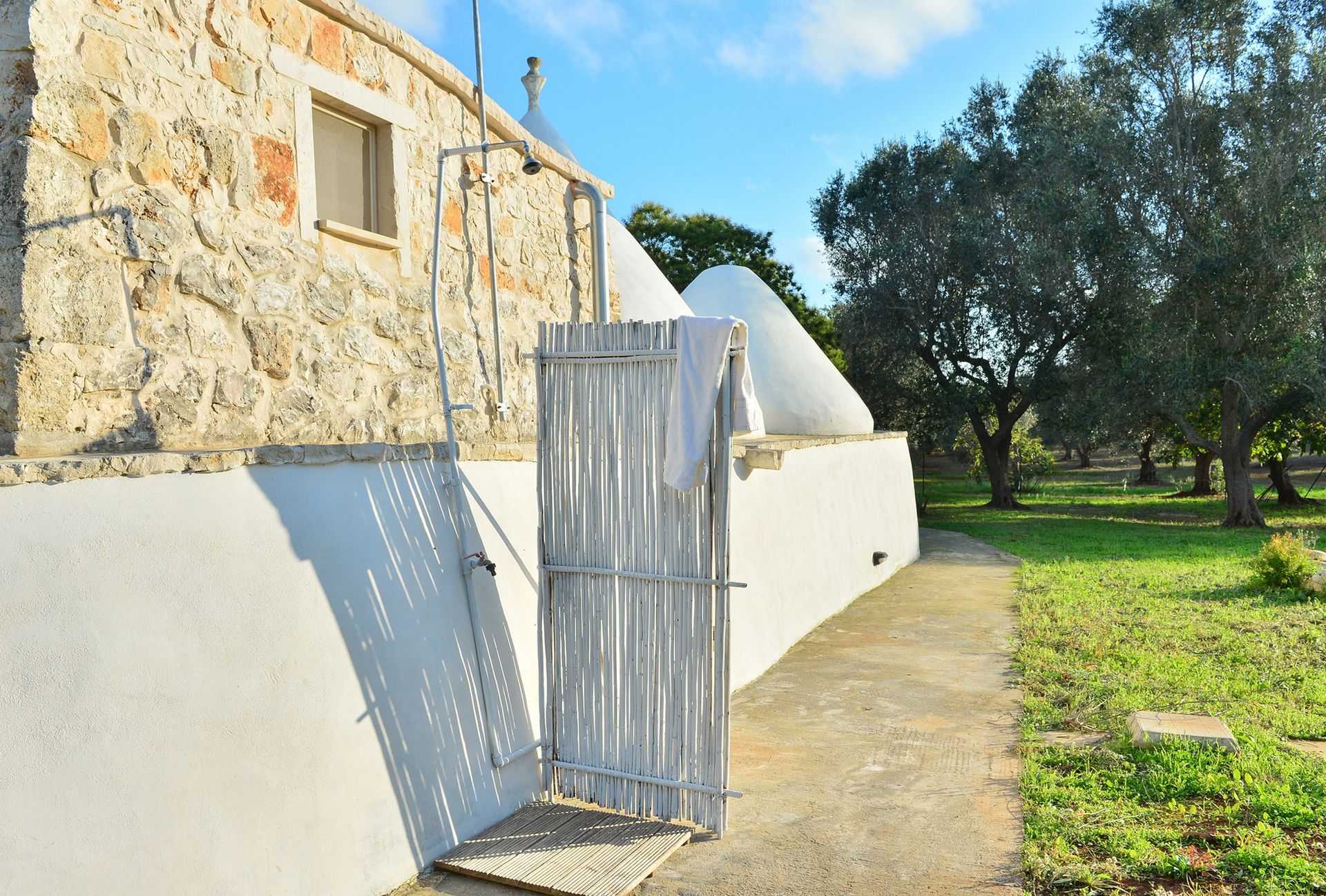 à l'arrivée à Trullo Delle Ginestre vous trouverez une jolie propriété, propre et bien entretenue, idéale pour des calmes vacances en Pouilles. Après une épuisante journée de visites, passez du temps avec la famille et les amis en bord de piscine en dégustant un verre de vin, un moyen idéal pour vous délasser à la fin de la journée. Si vous aimez cuisiner pour la famille et les amis il y a une cuisine bien equipée y compris four micro-onde, grille-pain et réfrigérateur, ainsi que, assez de vaisselle et couverts jusqu'à quatre personnes. Si vous préférez dîner «al fresco», il y a à votre disposition une véranda entièrement meublée où vous pourrez profiter du beau temps tout en mangeant en plein air.