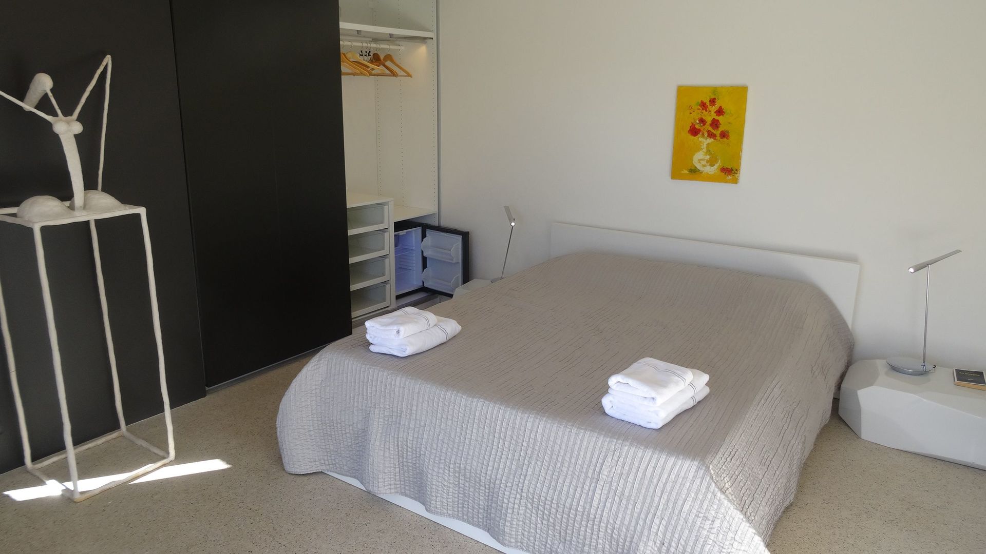 chambre à coucher 1: lit double (largeur: 1.6m), internet WIFI, climatisation, télévision, réfrigérateur, sortie sur la terrasse.