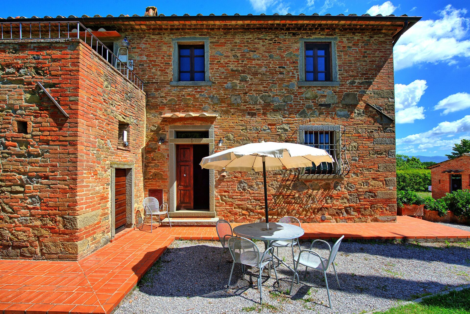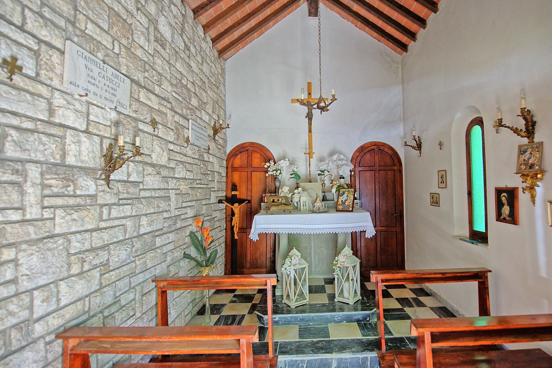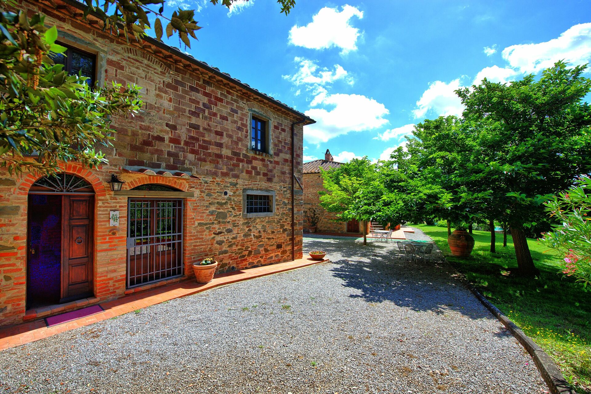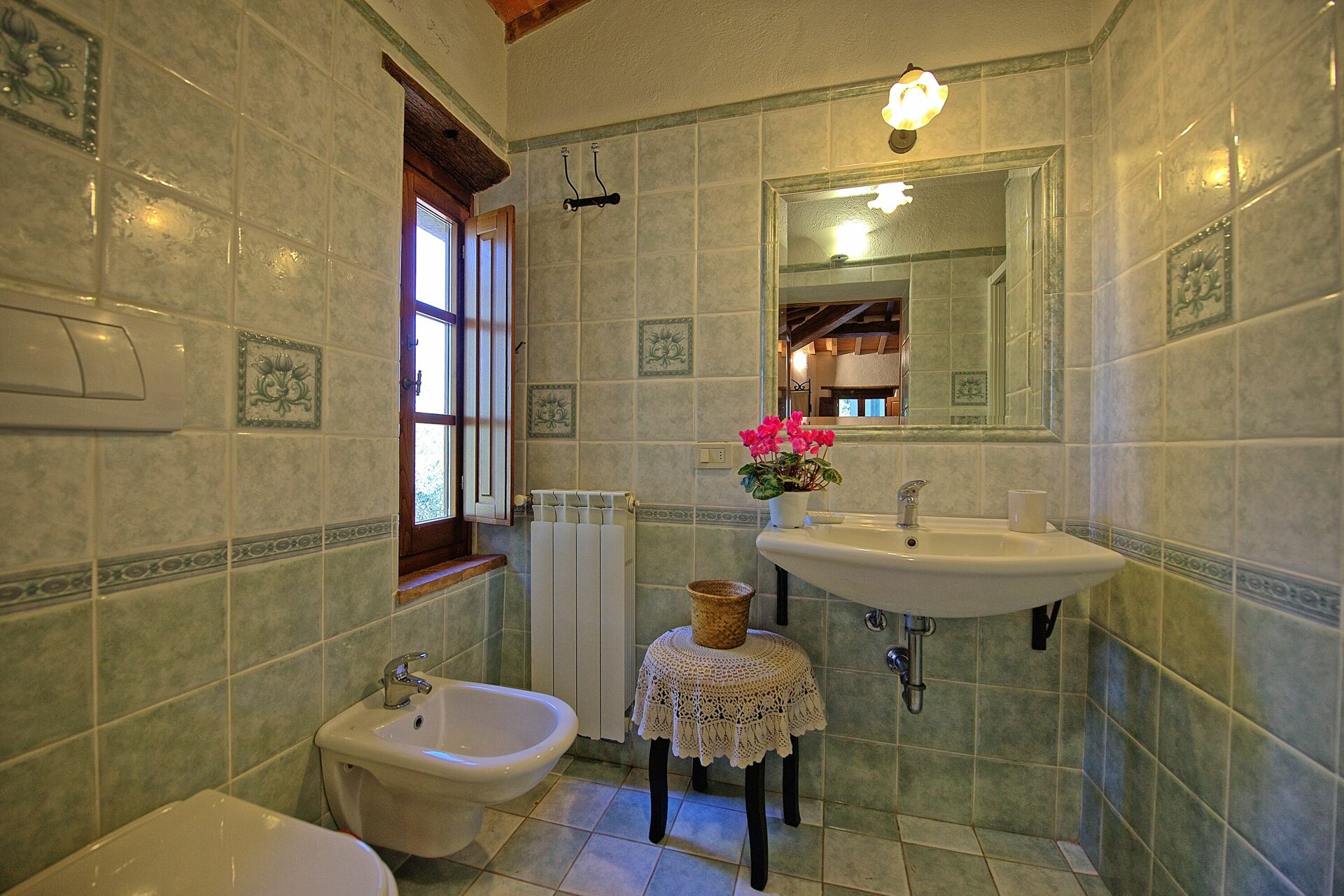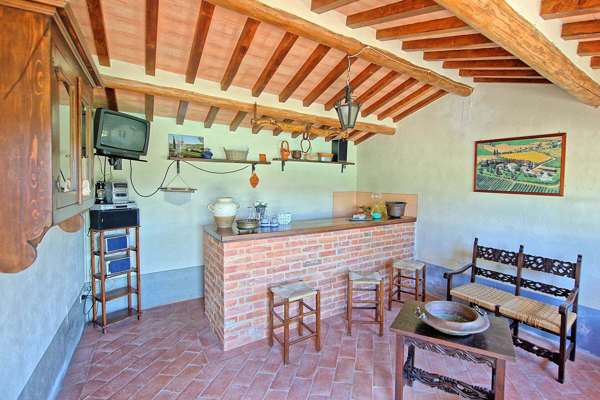 Premier étage: studio (climatisation) avec lit double et coin repas avec cheminée et kitchenette (réfrigérateur, micro-ondes), salle de bains avec douche.