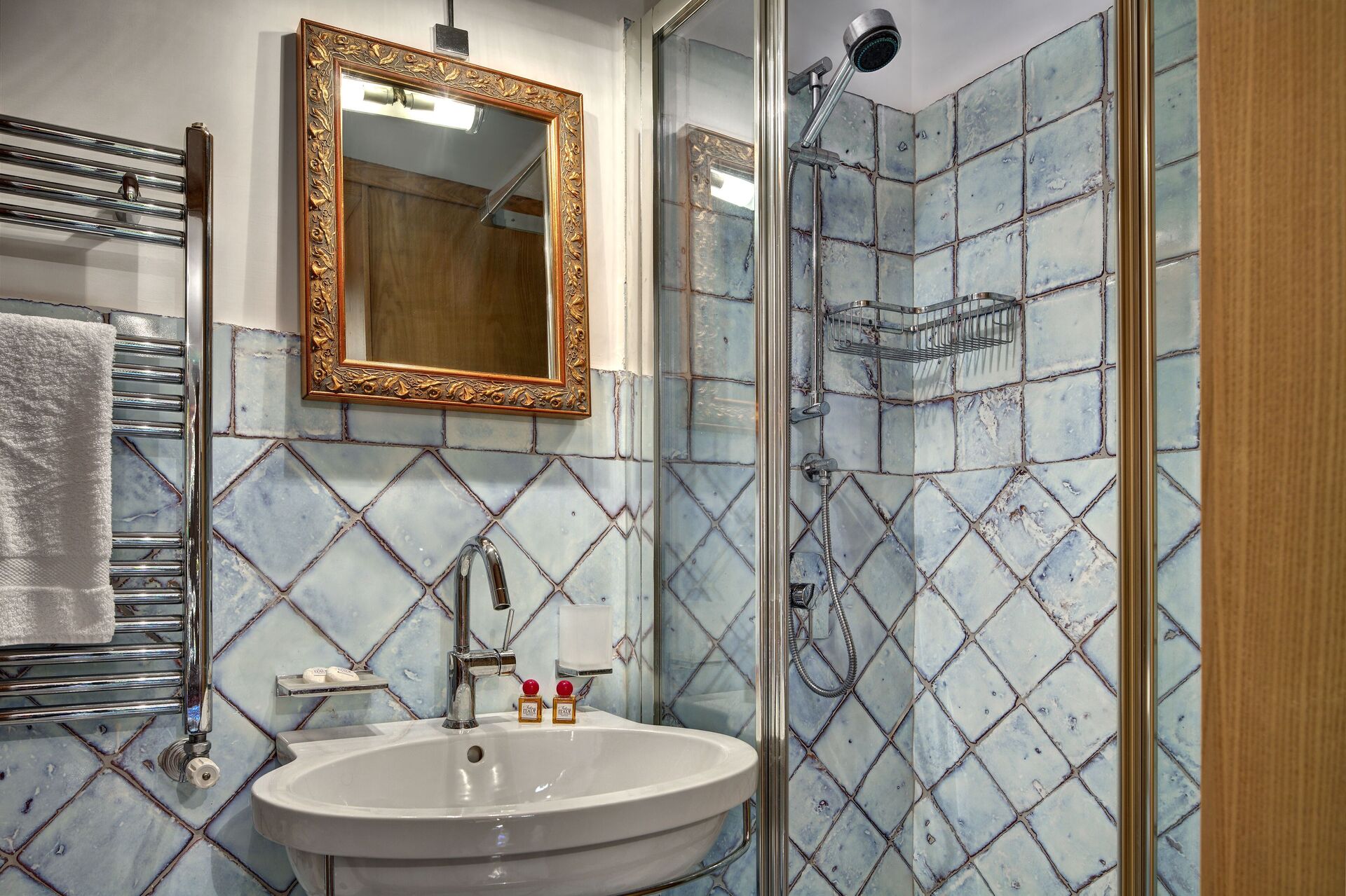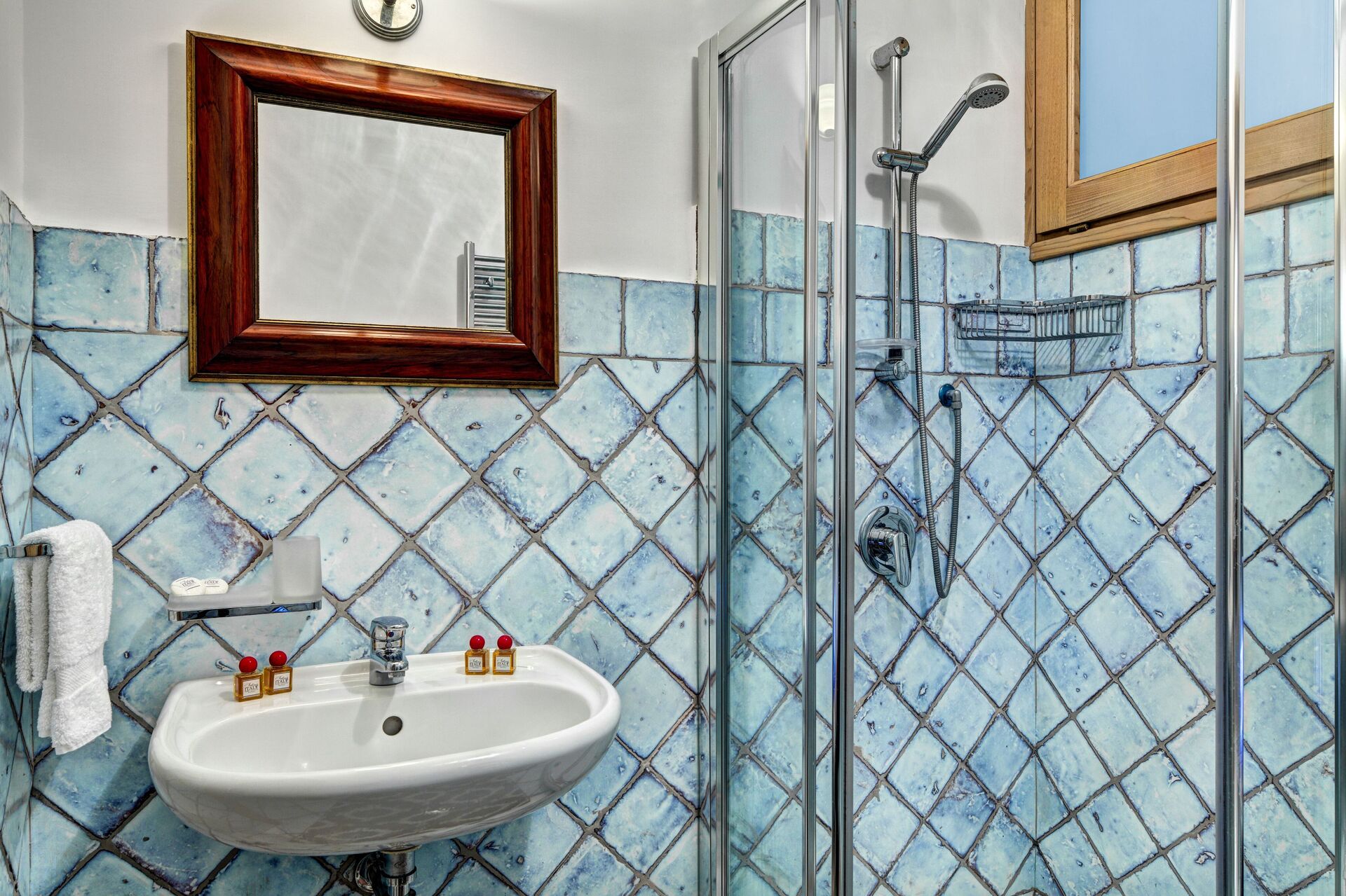 salle de bain: bassin, wc, bidet, douche, sèche-cheveux.