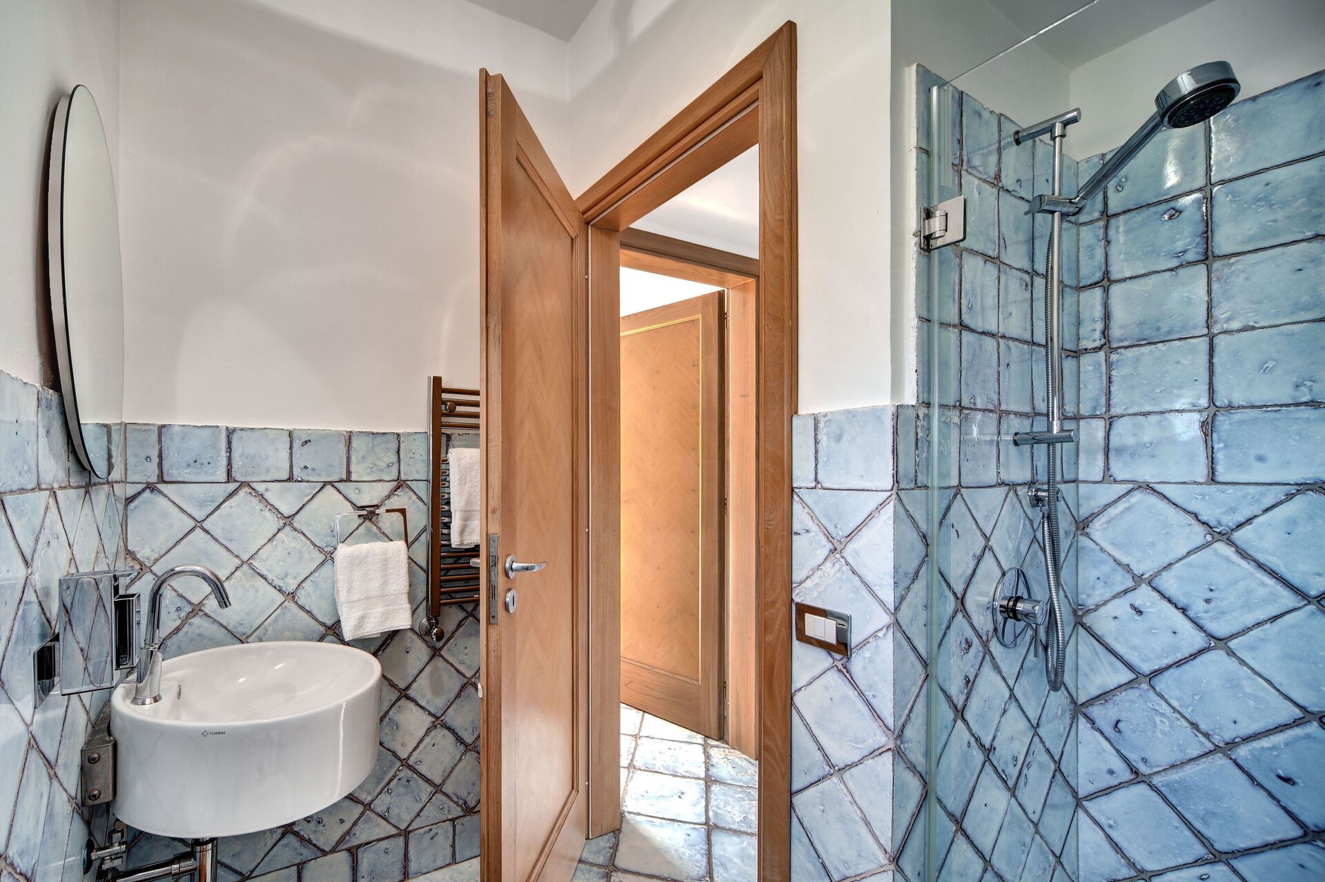salle de bain: bassin, wc, bidet, douche, fer à repasser, sèche-cheveux, lave-linge.
