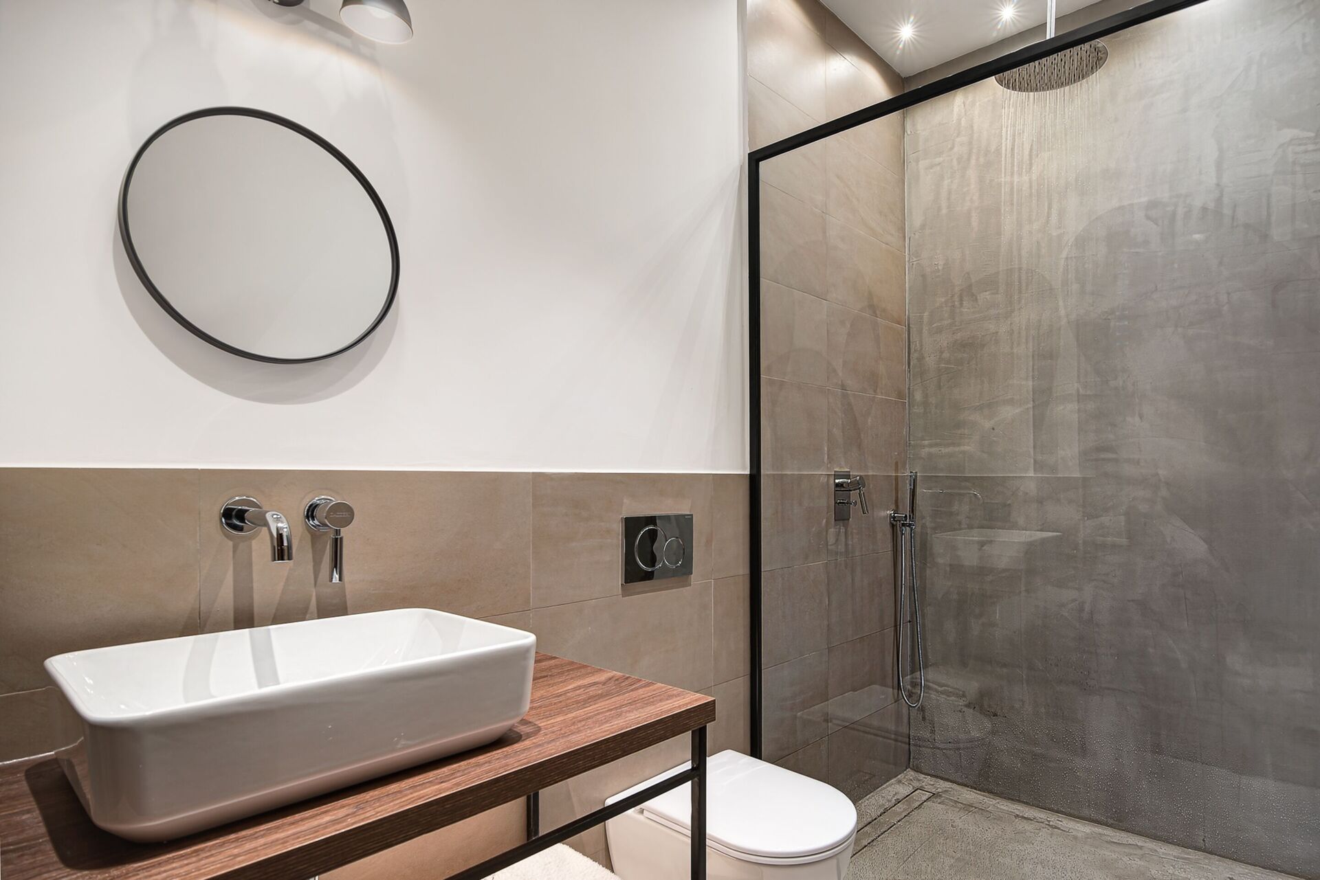 salle de bain: bassin double, wc, bidet, douche, sèche-cheveux.