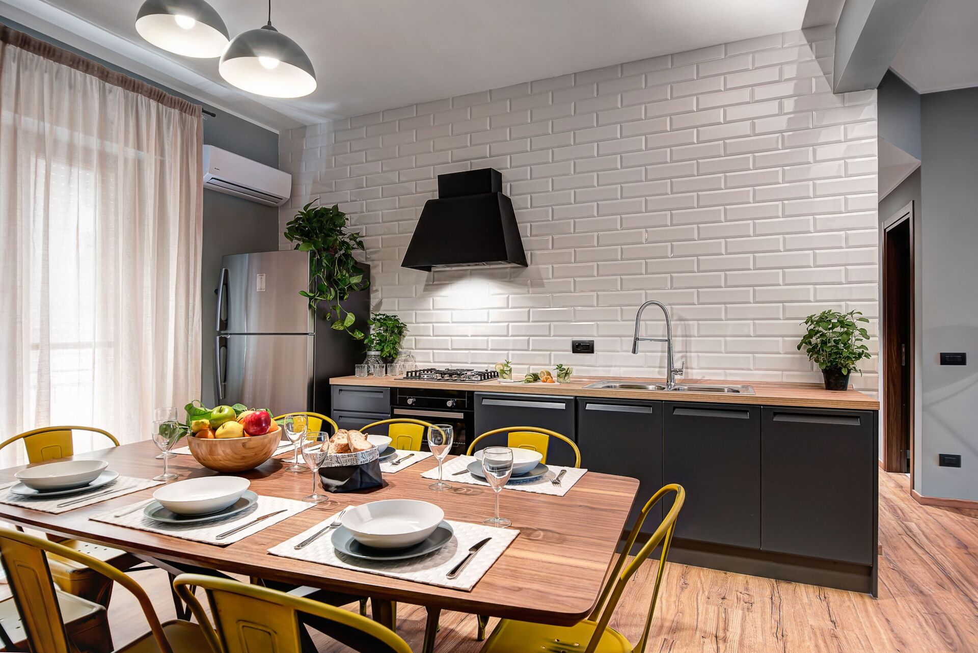 Une fois arrivés à Sorrento City Great Location vous trouverez une jolie propriété, propre et bien entretenue, parfaite pour des vacances calmes en Campanie. Peu importe comment vous passez vos journées... visites de musées, shopping, visites ou tout simplement en vous baladant à la campagne, quand vous arrivez à la maison, vous pouvez vous délasser avec votre famille et vos amis et conclure au mieux un autre jour de vacances en Campanie. Dîner avec les amis et la famille est une grande partie de la culture italienne. Profitez de la cuisine bien équipée pour préparer les repas avec des produits locaux pendant vos vacances. La cuisine comprend grille-pain, cuisinière et réfrigérateur, ainsi que, abondance de vaisselle et couverts pour un maximum de huit personnes.