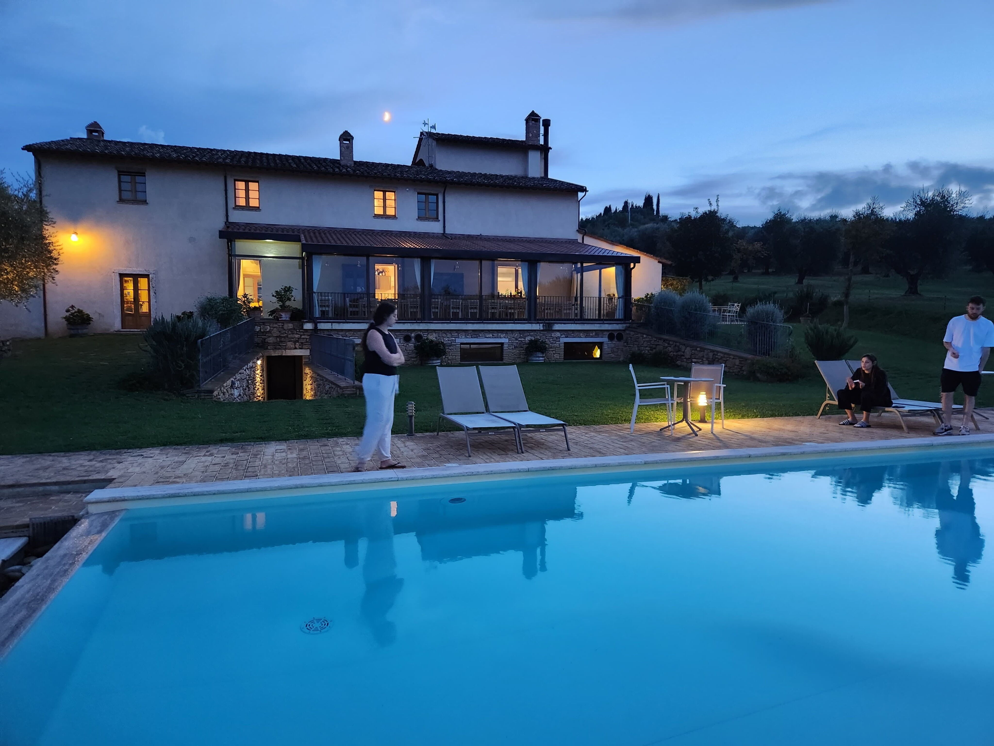 We had a wonderful time while at Villa Le Buche. The staff was wonderful and immediately responded to every question and concern. The location was centrally located in Tuscany and perfect for going on many day trips. The villa was gorgeous and fit our family of 23 adults 3 babies quite nicely. We had one overall issue in all the bedrooms was the air conditioning not getting cool enough. Despite setting thermostats down to 23 they never seemed to get below 27 which made for warm sleeping as the temps were very high. Our second big issue was ants swarming into villa to the point where the annex room was swarming in suitcases. There is only one small washer/dryer on site and with a place that large and that many people it proved to be a challenge especially when the cleaning folks were using it as well. Every planned activity dinner, tasting, and cooking classes were wonderful.