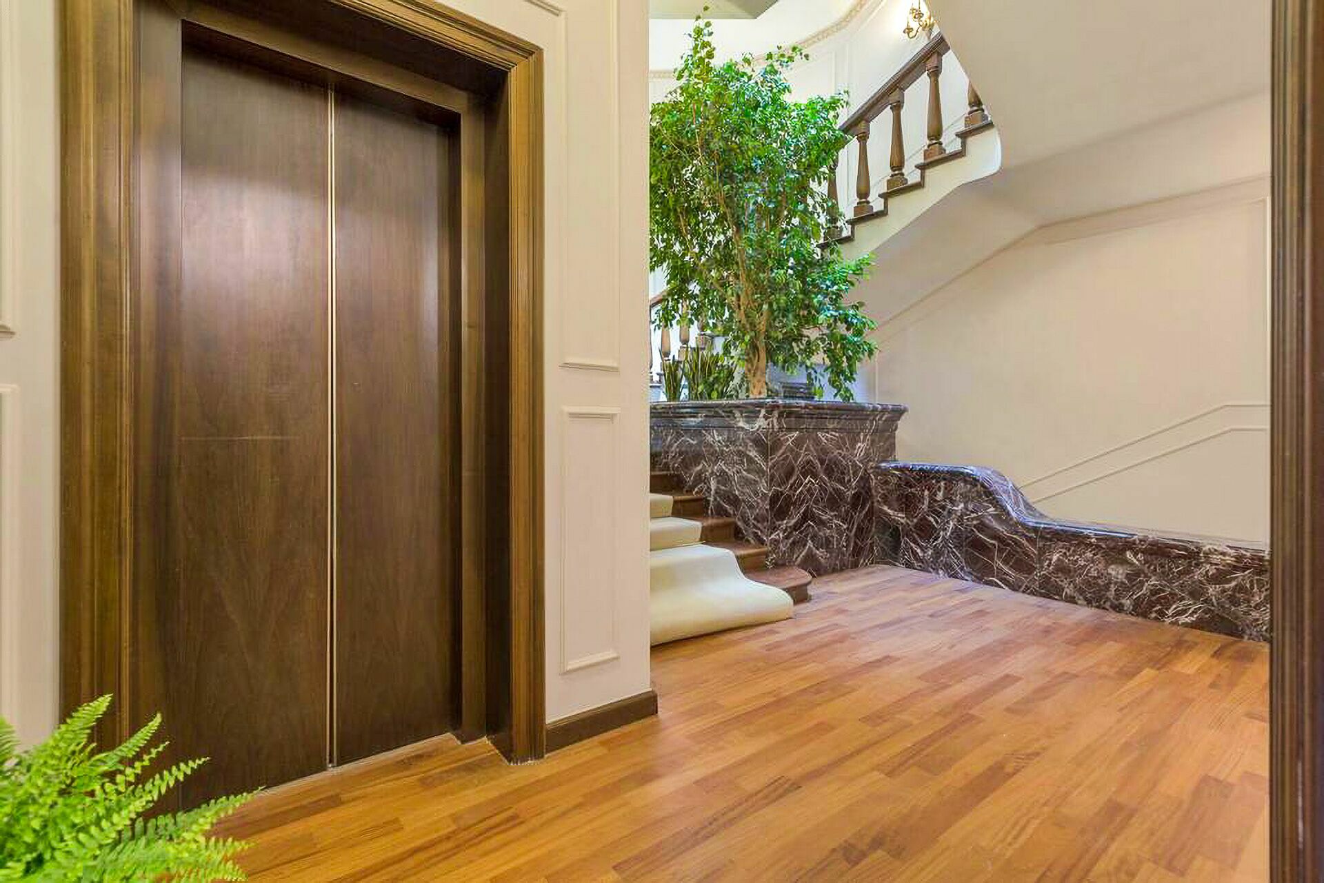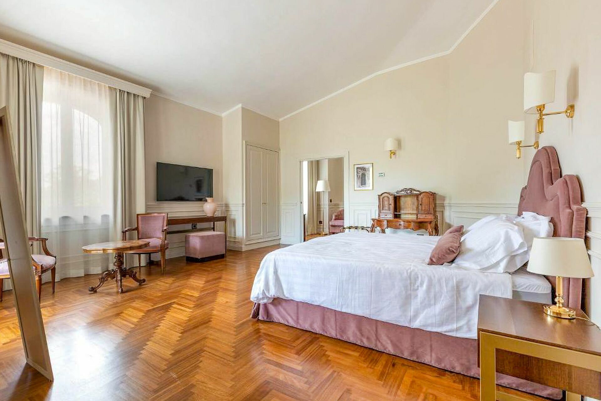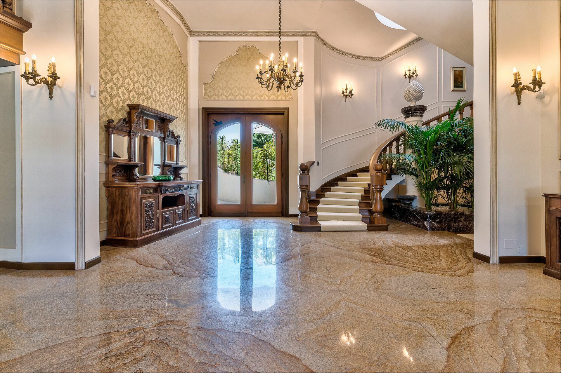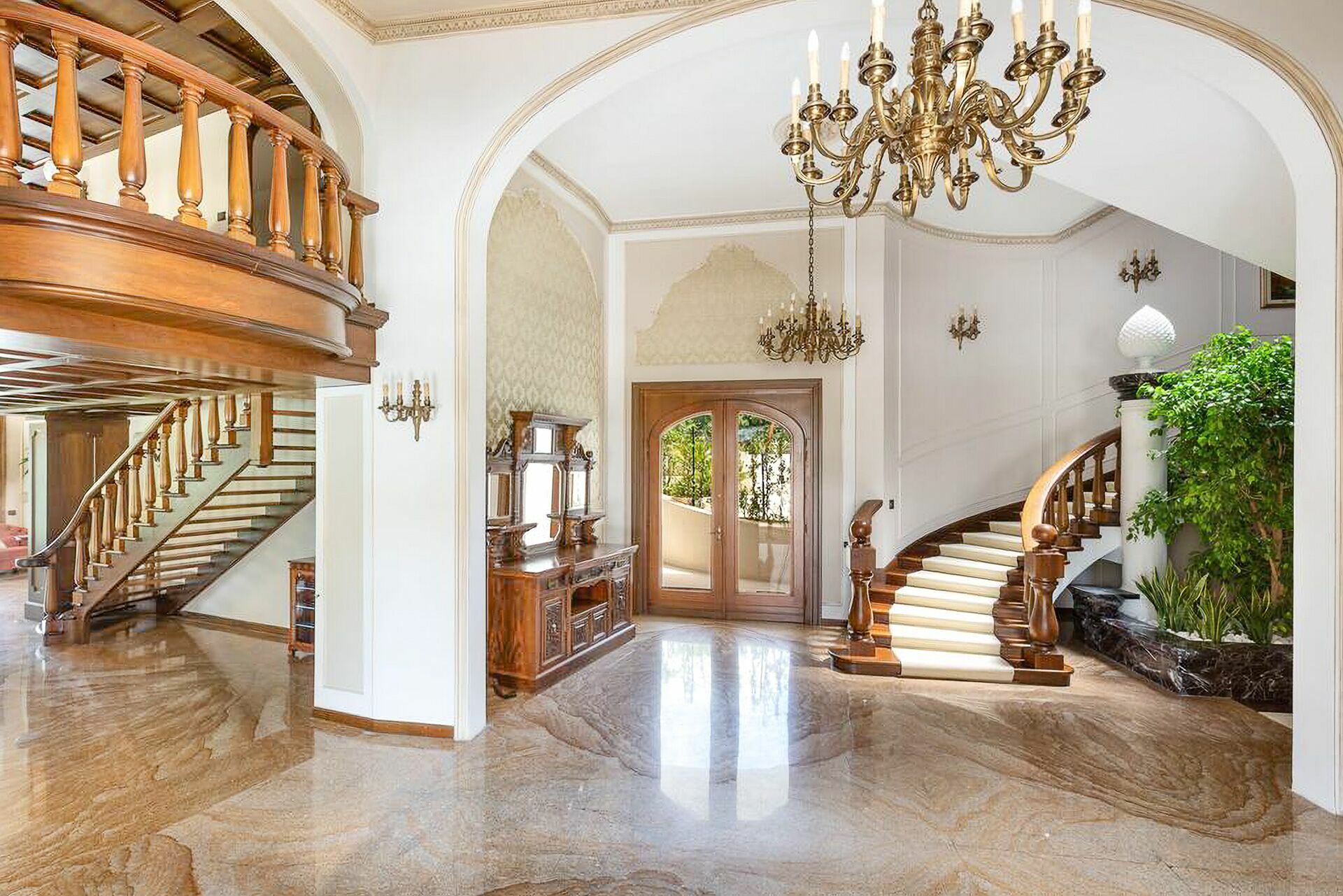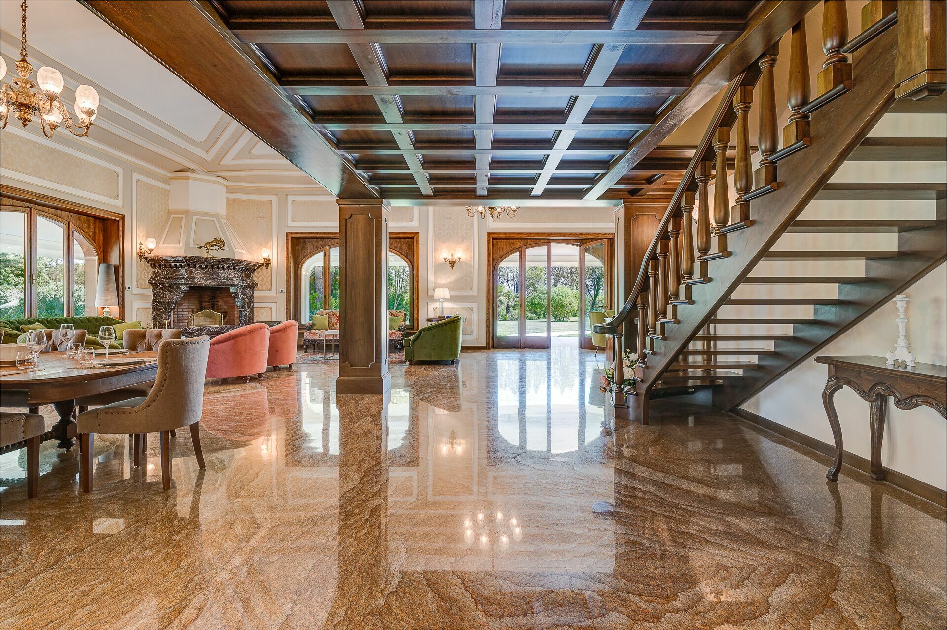 The interiors are characterized by marble and wooden coatings and fine furnishings.