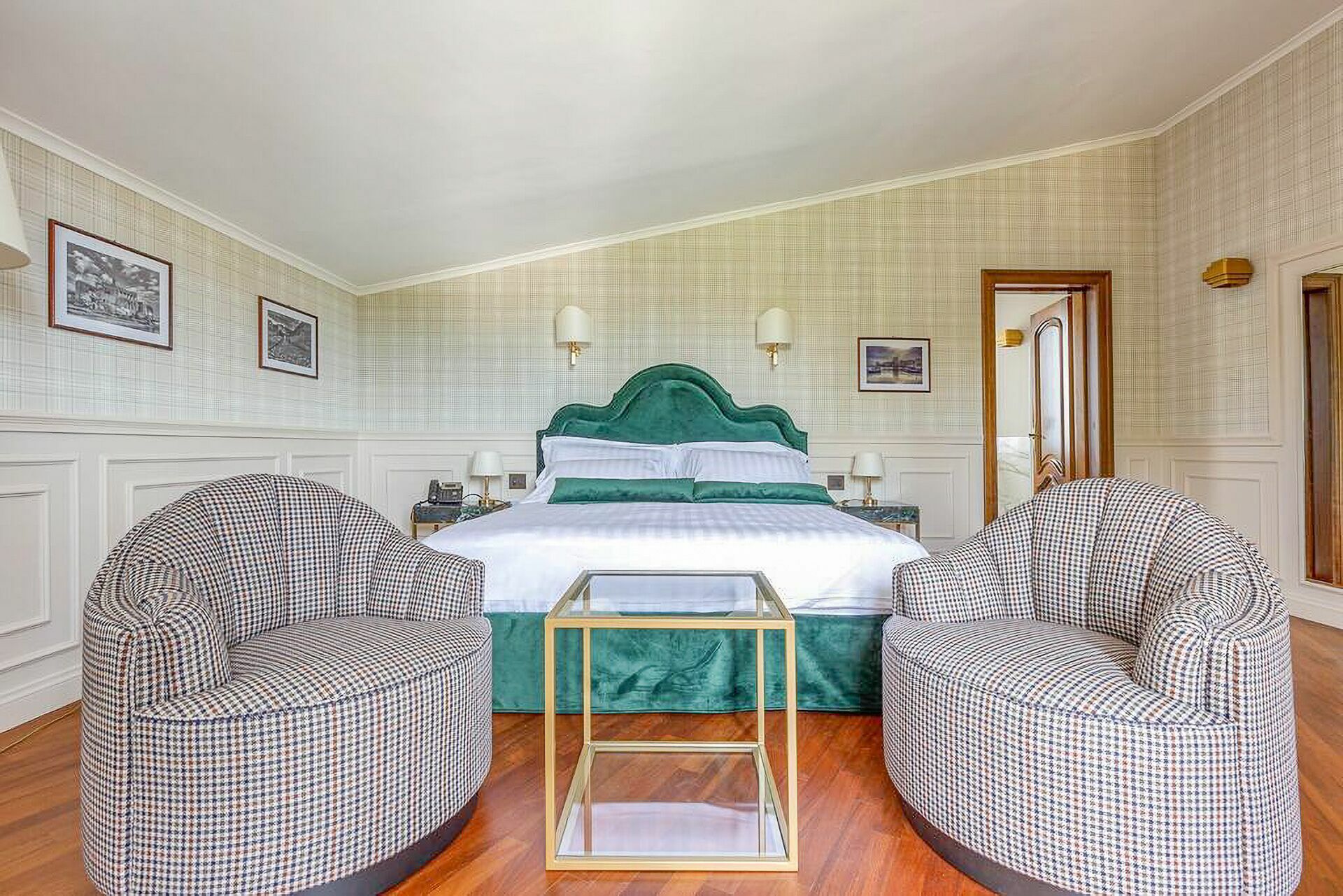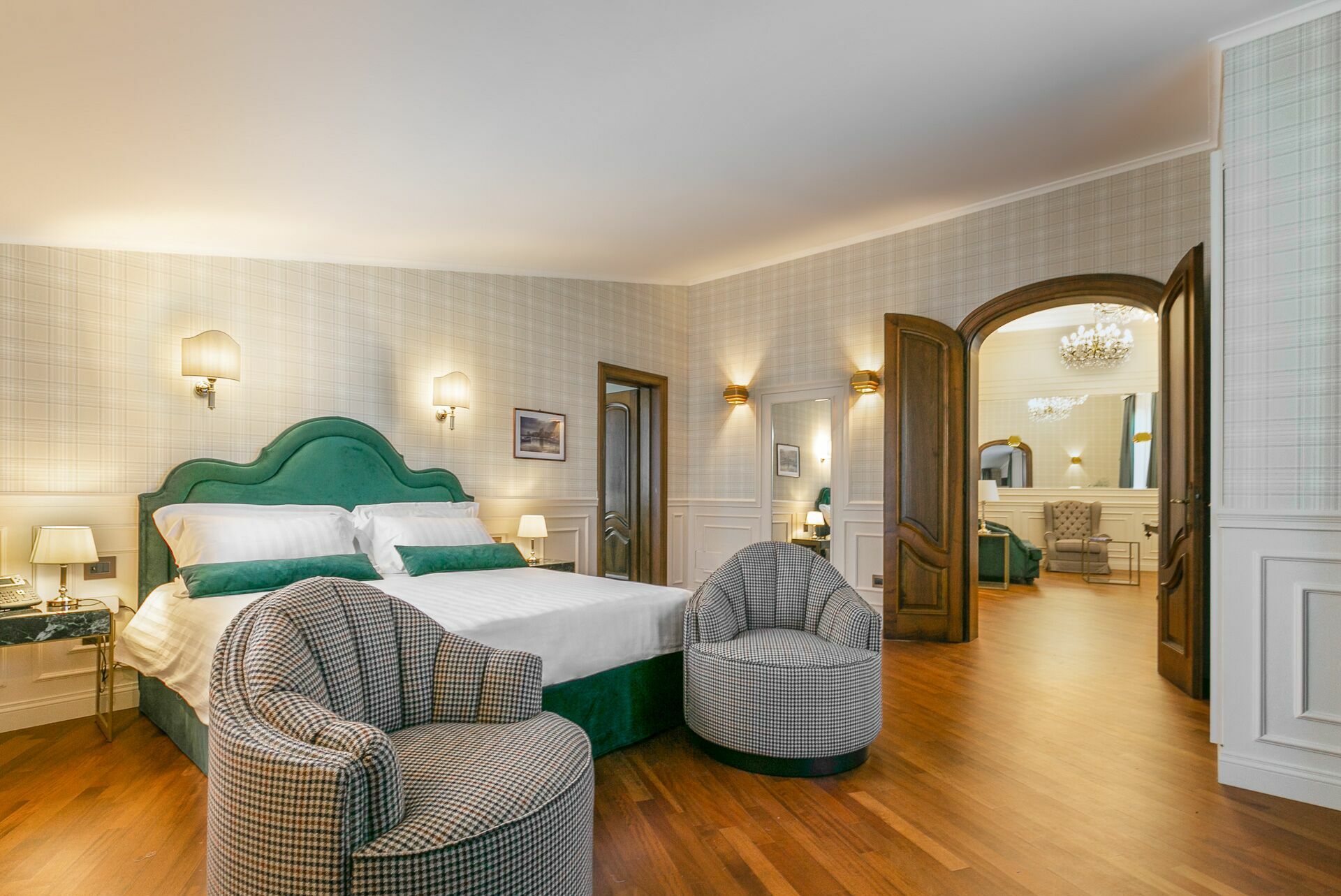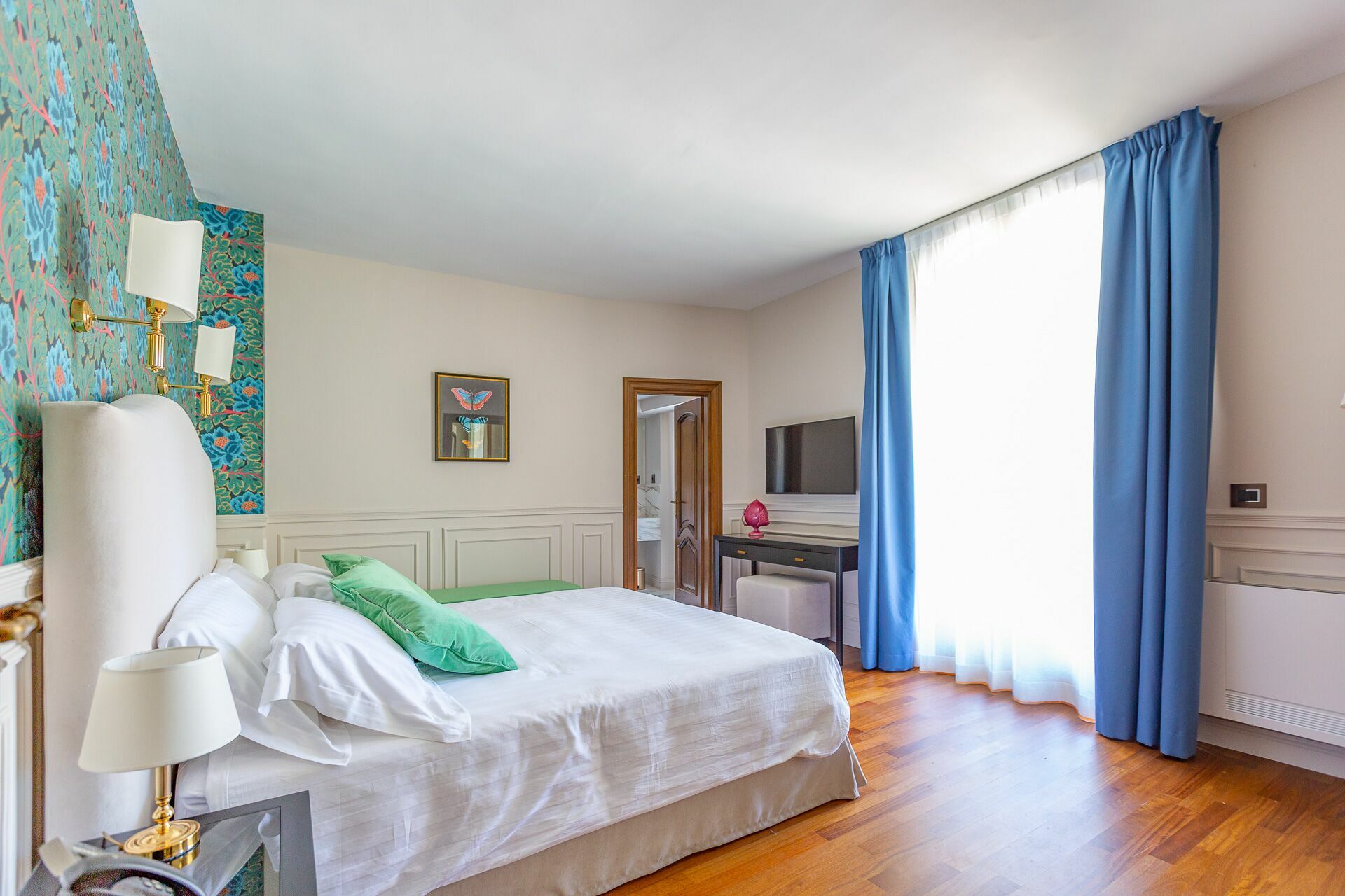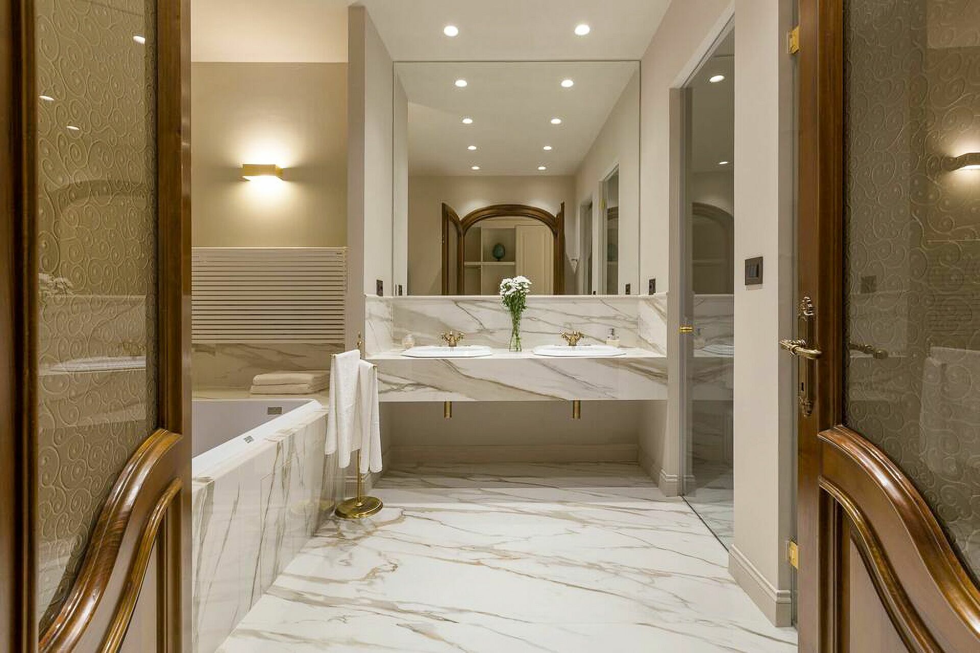 The interiors are characterized by marble and wooden coatings and fine furnishings.