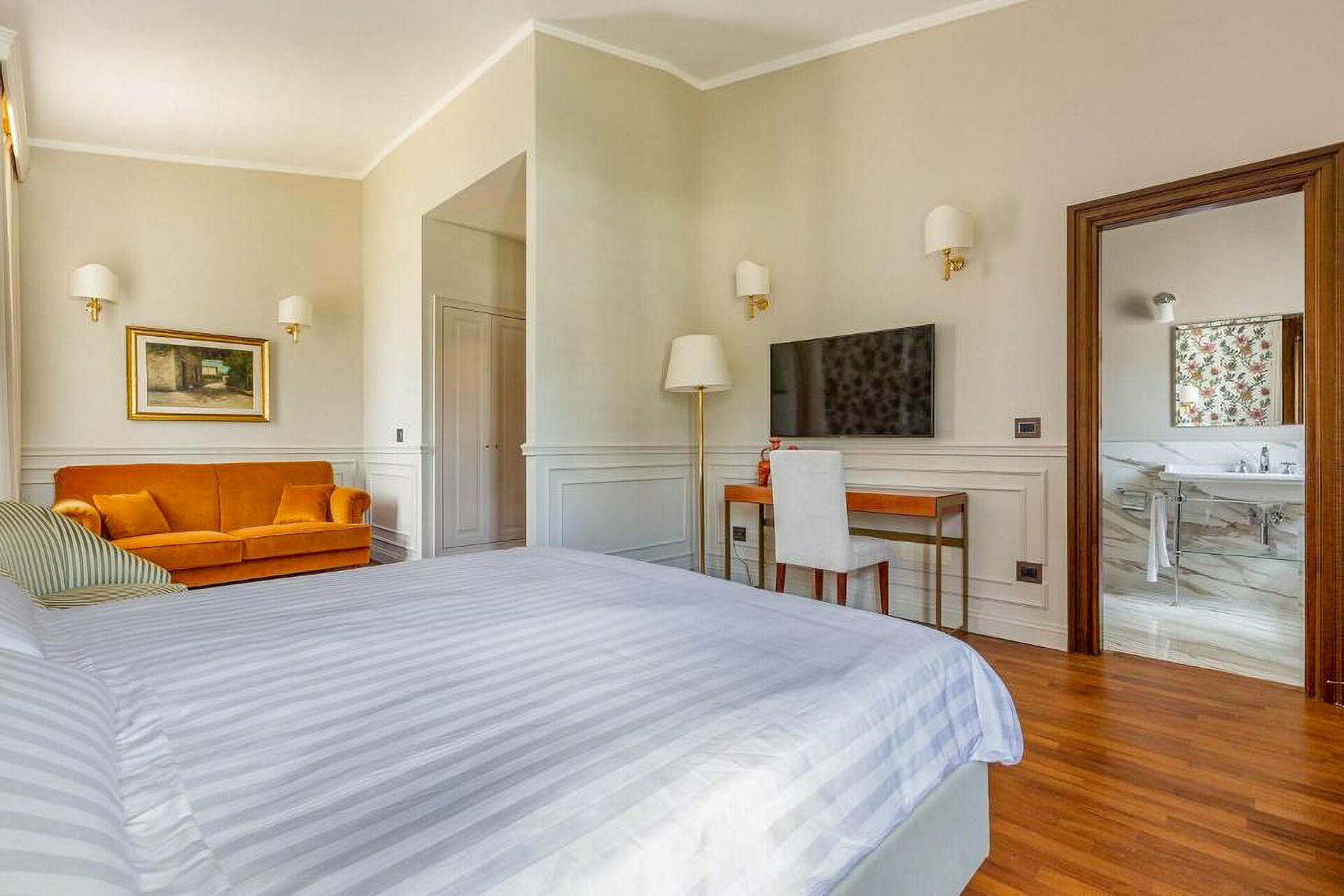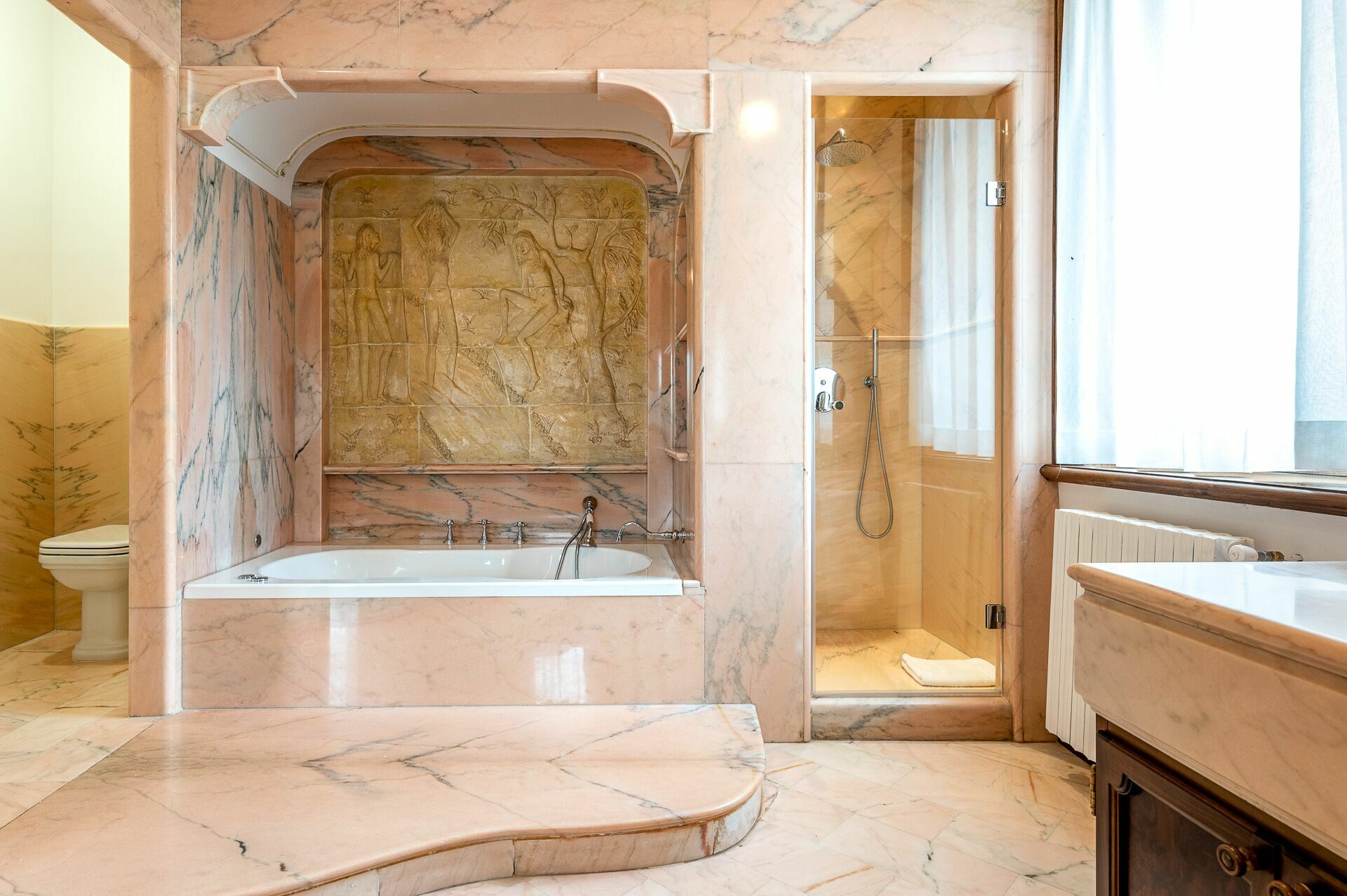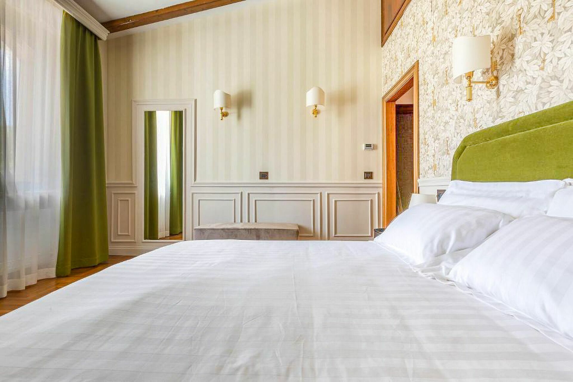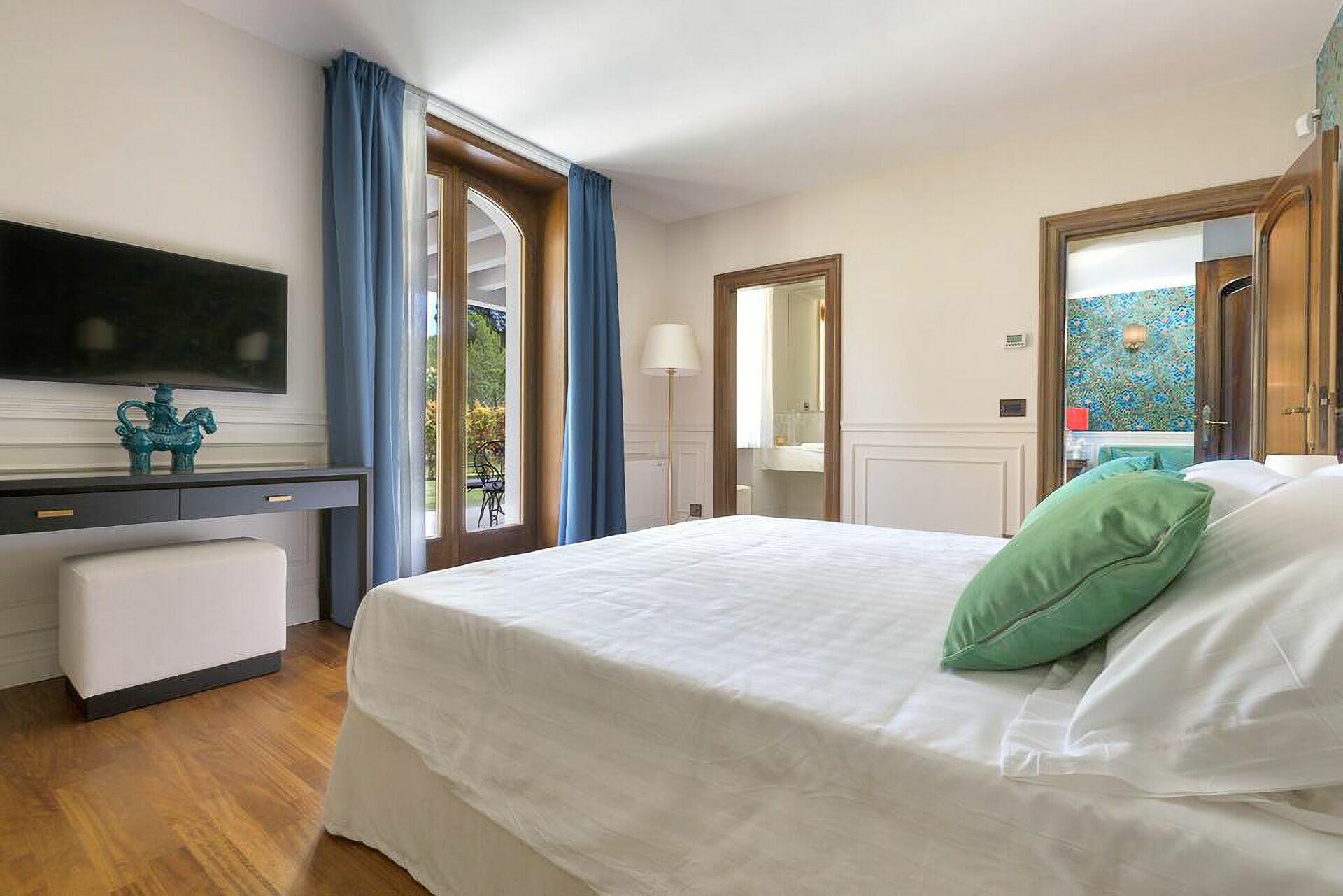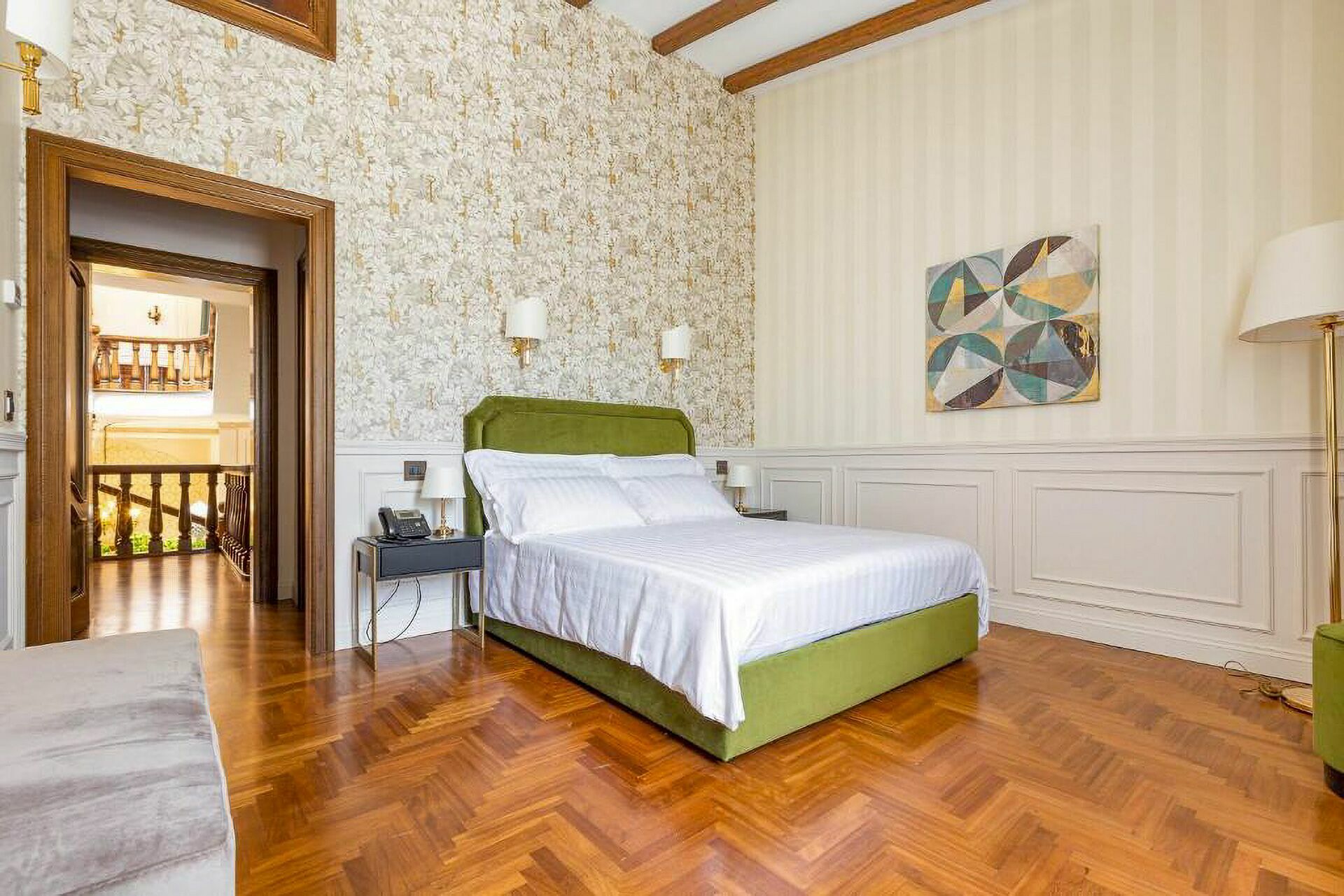 The interiors are characterized by marble and wooden coatings and fine furnishings.